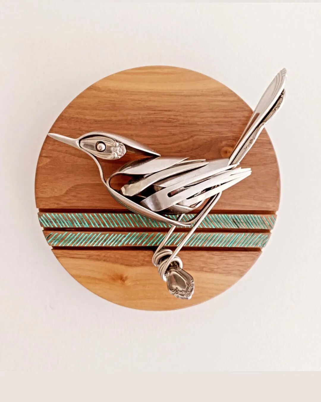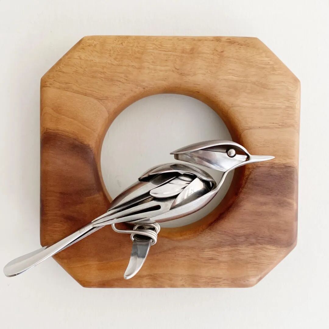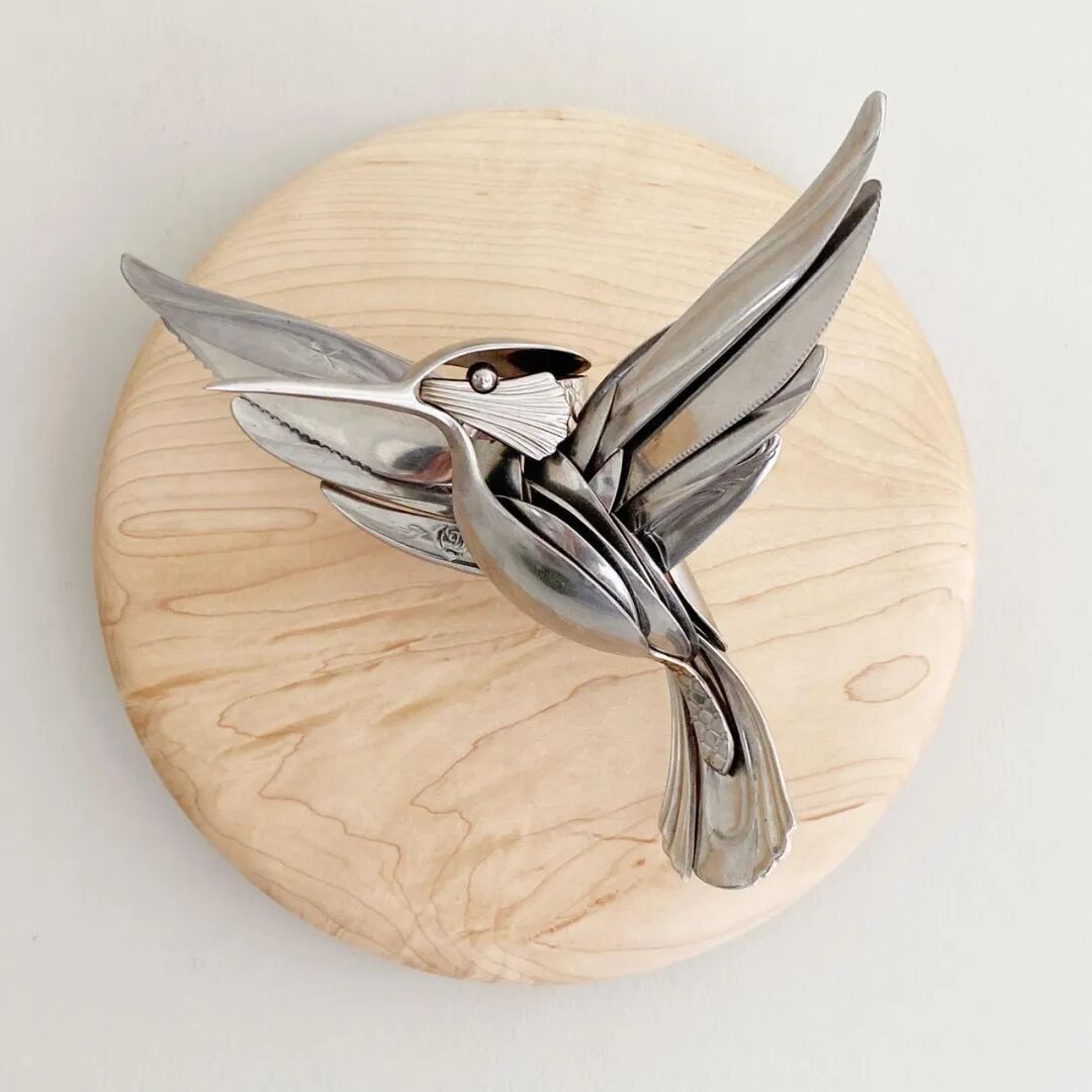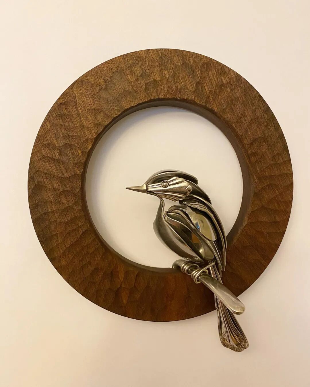 马特·威尔森利用废弃金属制作的雕塑作品,主要以鸟类为主,也不乏其他类型的动物形象,不过,他的鸟类作品最为精彩,似乎这些餐具造型,就是为了这些鸟类才诞生的一样。