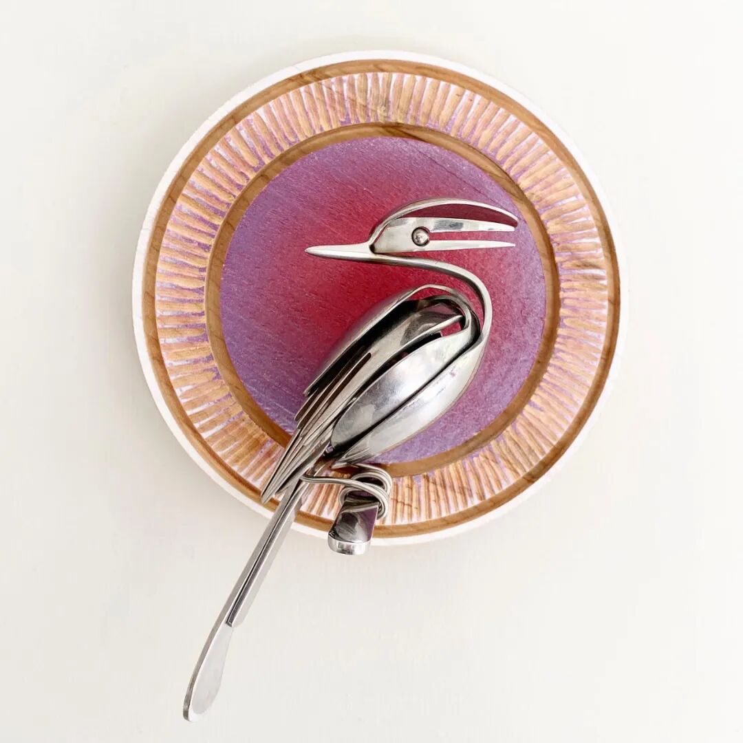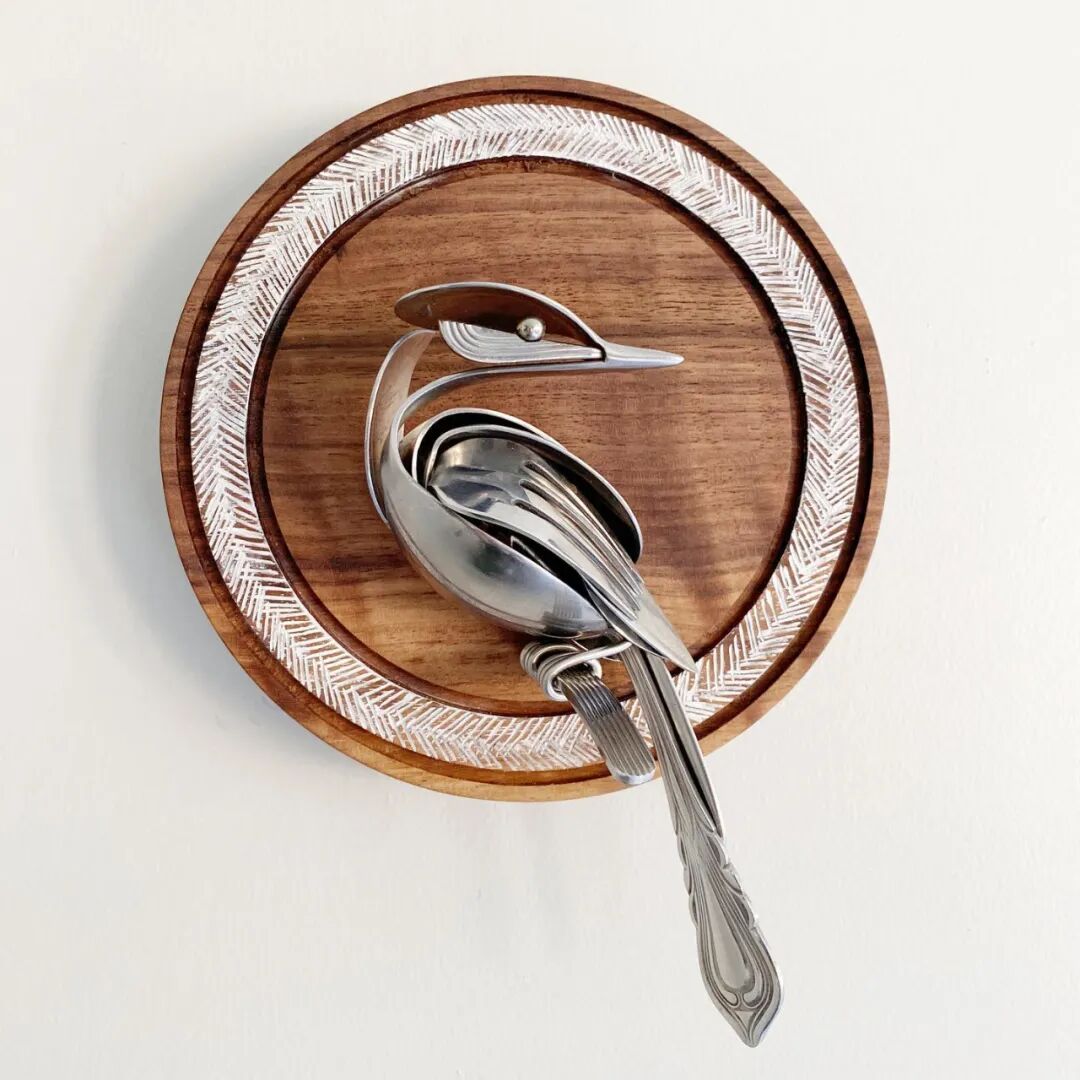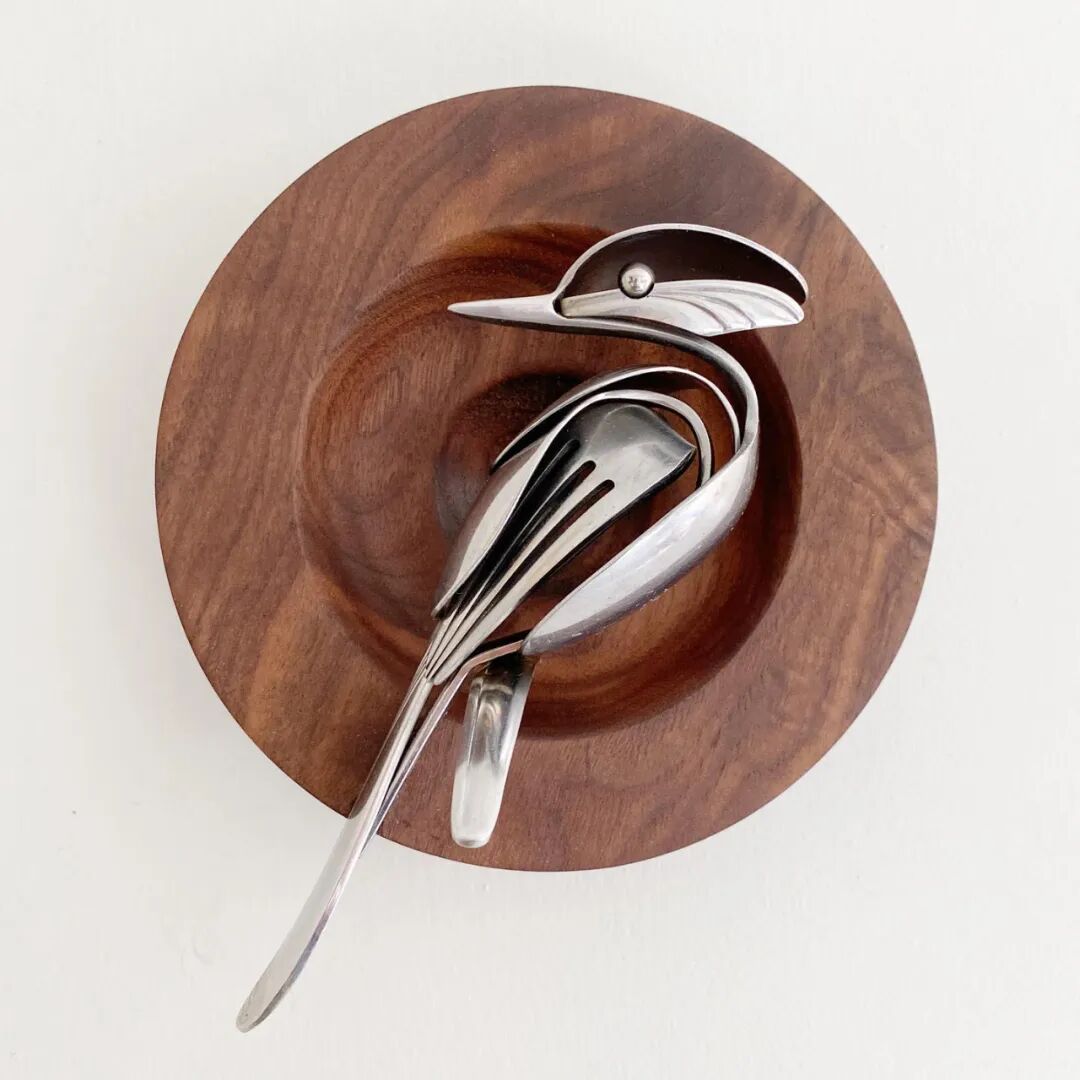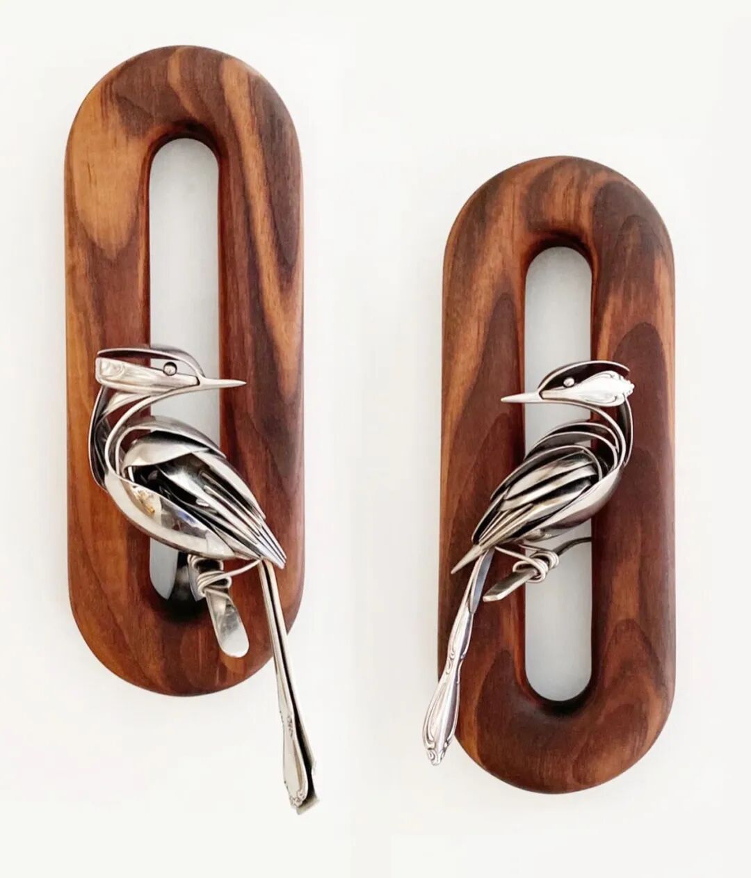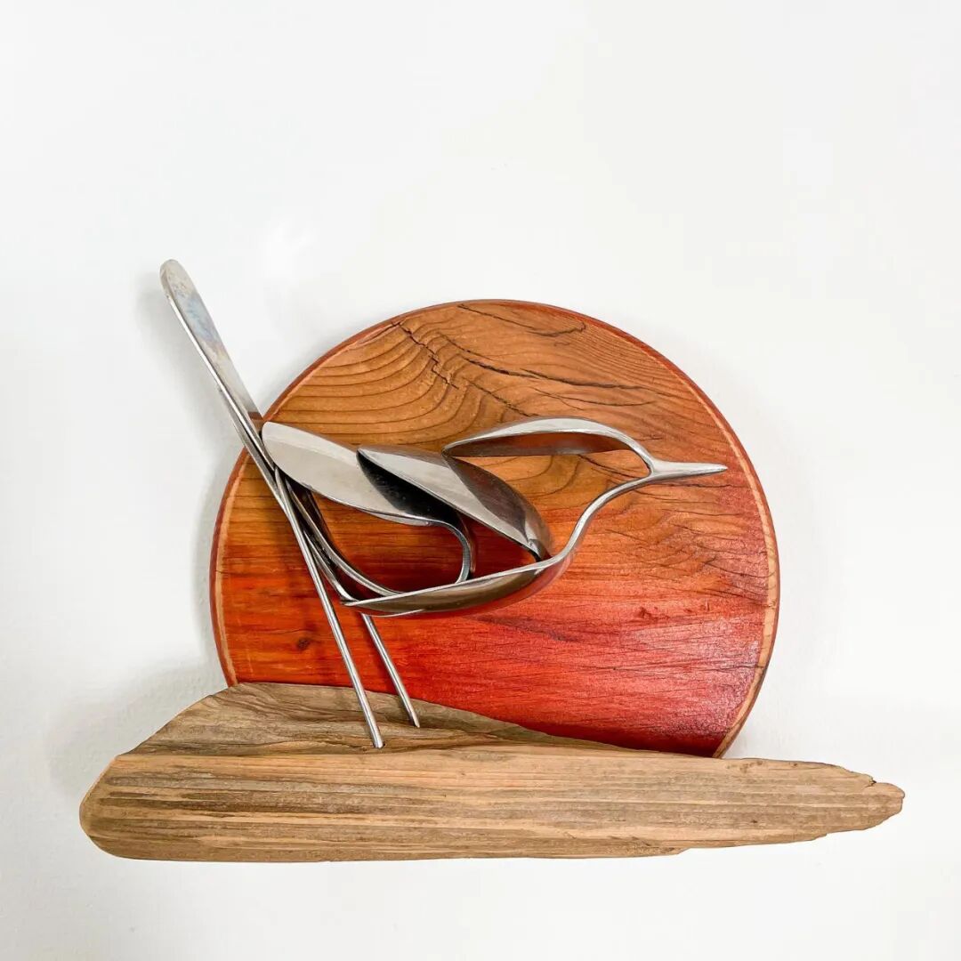 马特·威尔森利用废弃金属制作的雕塑作品,主要以鸟类为主,也不乏其他类型的动物形象,不过,他的鸟类作品最为精彩,似乎这些餐具造型,就是为了这些鸟类才诞生的一样。