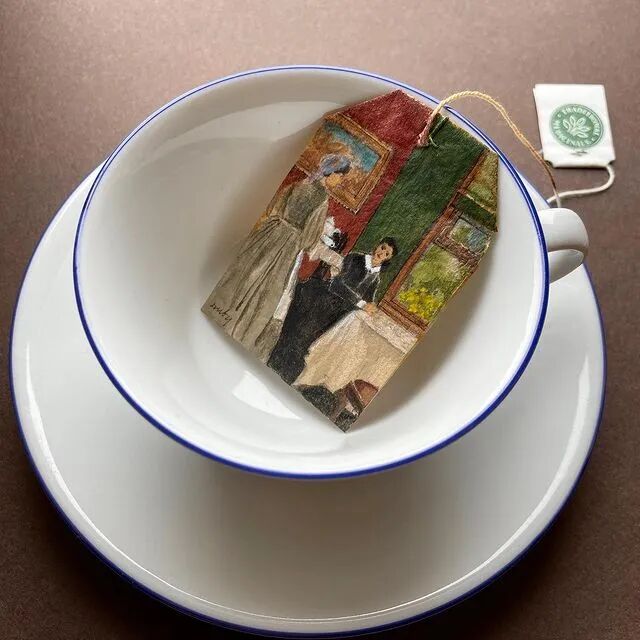 这位茶包画家从2015年就开始尝试在茶包上绘画,这一画就是8年,起初只是一种试验性的尝试,没想到转变成她的主业,她也因为这些精致的茶包画作而闻名世界。至于这些茶包的来源,塞尔维斯介绍,她自己就十分喜欢喝茶,长期以来积攒下来很多,当然,自己的积累不能满足绘画需要,在她身边还有很多喜欢喝茶的朋友,在她的要求下,朋友们也会将喝剩的茶叶包留给她。