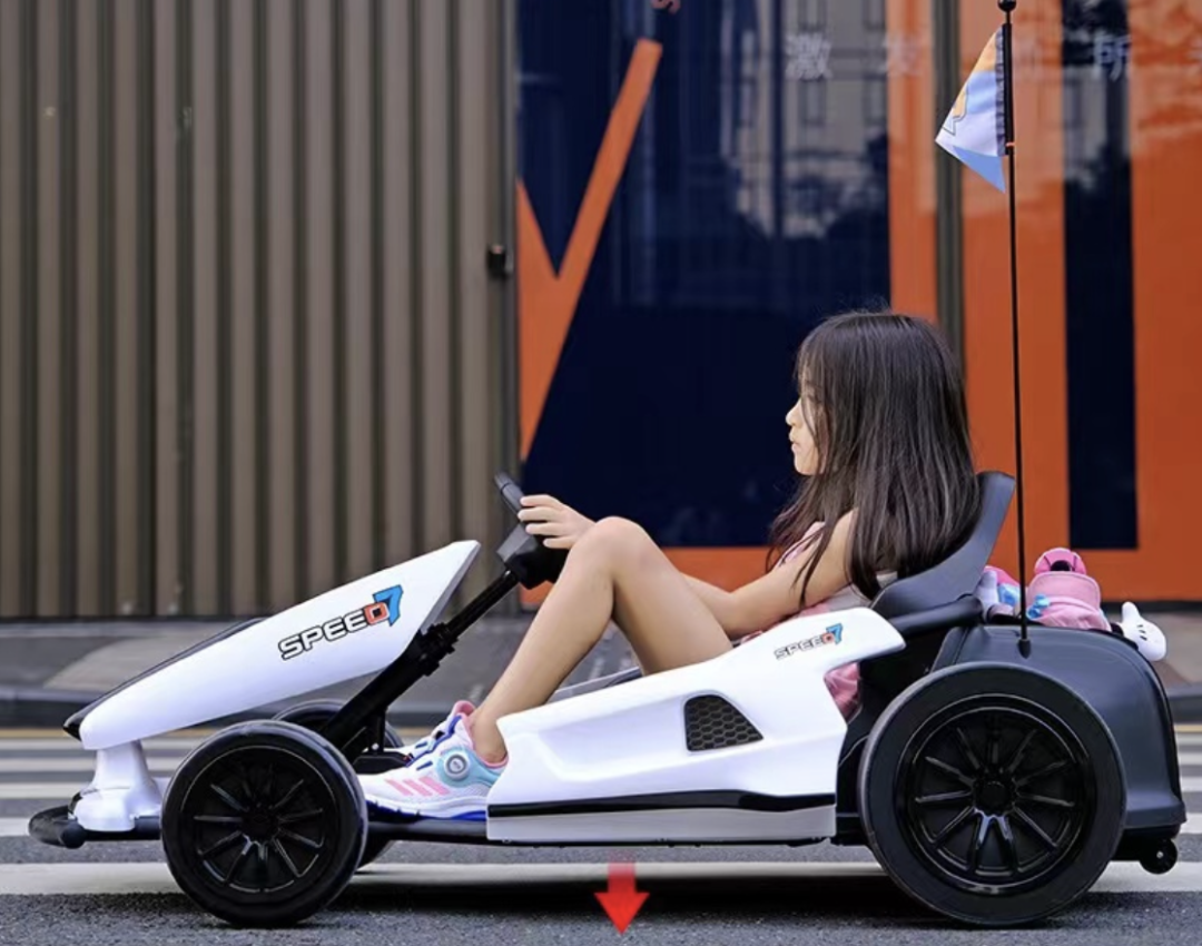 这类儿童卡丁车都是后置后驱,而且极速也到了15km/h左右,漂移也不在话下。但最大的问题可能就在速度上去了,性能上去了,是不是得配个有大院子的别墅才能施展拳脚?