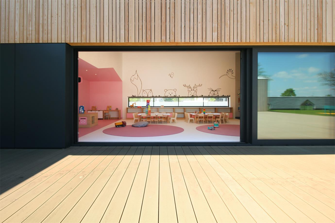 每个教室中都可以进入中央露台,且都有大窗户,可以打开形成一个6米宽的通道,当天气好的时候,外部可以成为内部的无缝延伸,所有的空间都成为一个巨大的游乐场。