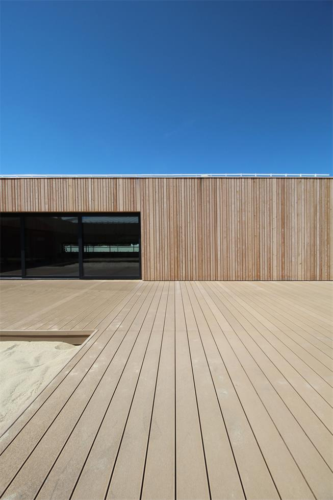 立面选择了像砖、木材、金属片等更自然的材料,为了更安全露台使用了复合板。
