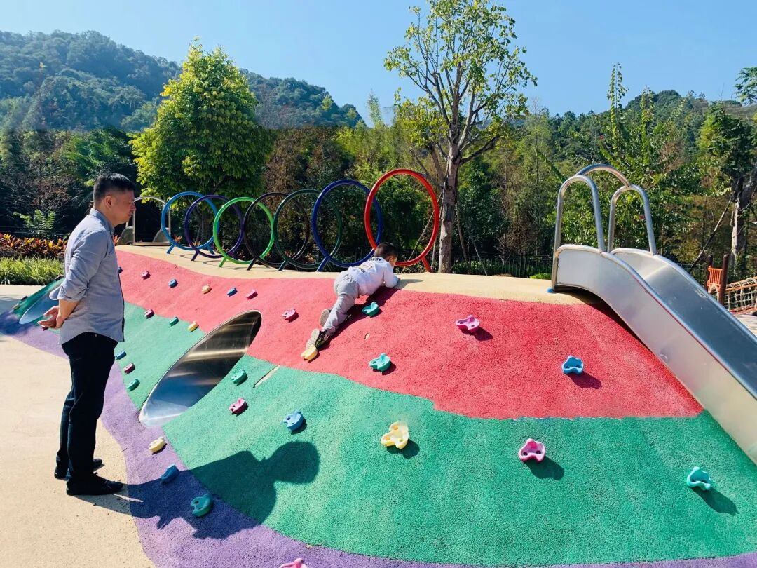 场地中的设计要素要从儿童使用角度出发,打造专属于儿童的活动空间。场地地形空间的创造设计中最好是结合平坦的活动空间和有一定微起伏的地形空间,为亲子提供攀爬、俯冲、趴卧、翻滚等活动,如果原有地形高差较大可利用地形来建造滑梯、攀岩等一类的冒险型游戏项目,增加活动趣味性。
