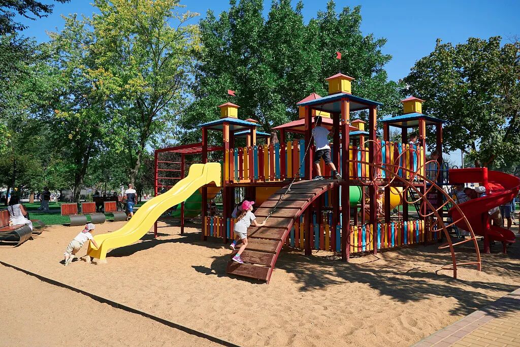 游戏设施的大部分器具应选择木质或金属管,这些材质断头处理圆润、棱角光滑,结构稳定、尺度适宜。并应提供多种游戏器械供儿童选择,划分游戏难易程度,让孩子们随着年龄和能力的增长而依次使用。