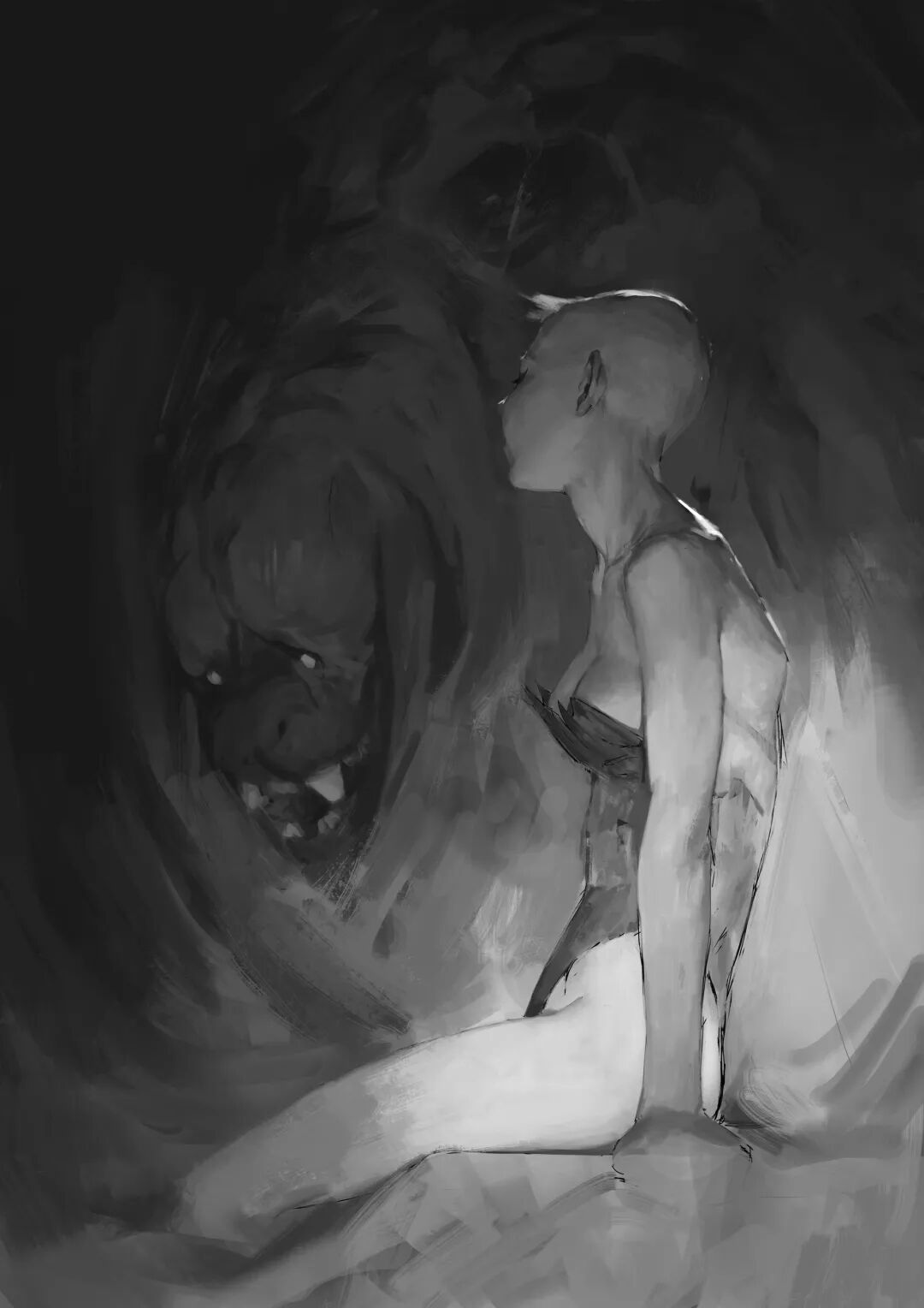 厚涂写实风格的油画质感充满神秘朦胧色彩