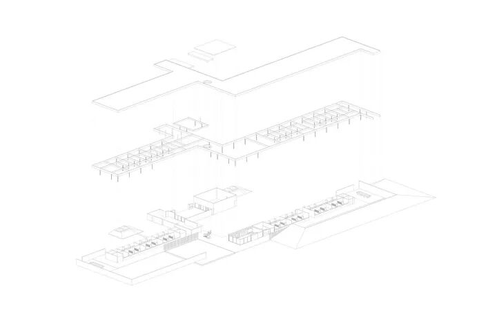 建筑体依照功能性划分为I 区和 II区。I 区带有社交属性,并能远眺到马球场;II 区在物业背后,是马场工作区和工作人员住宿区。