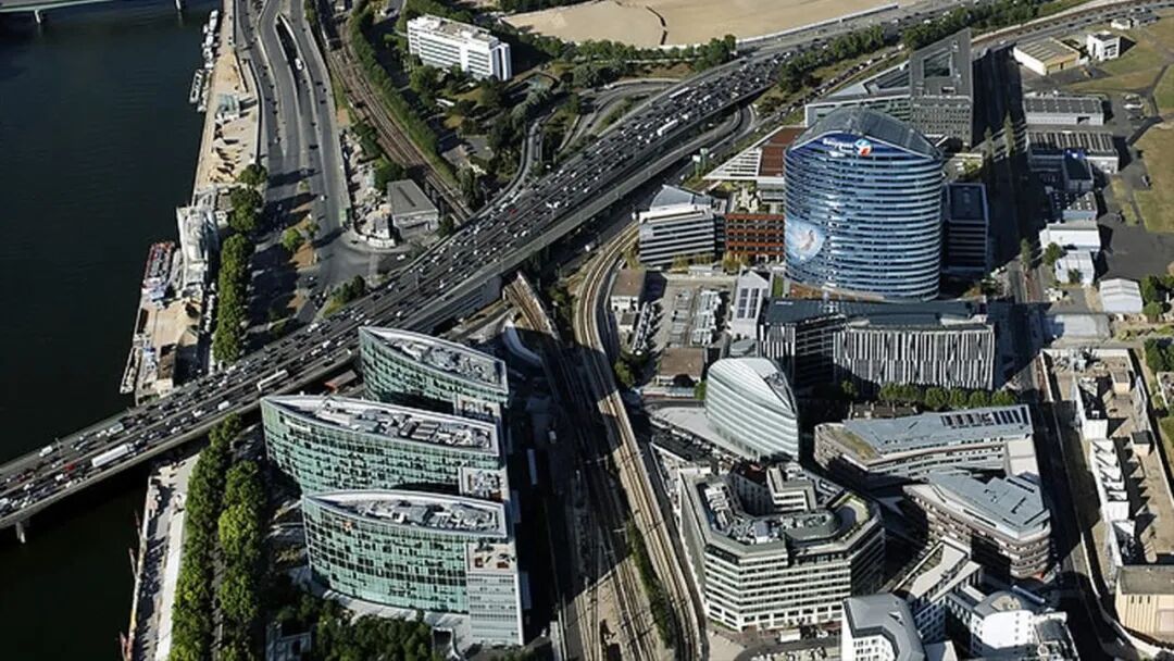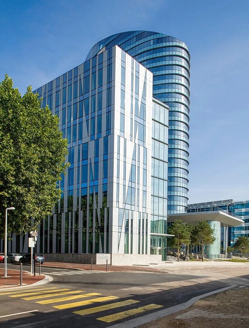 法国电信总部,位于巴黎远郊塞纳河左岸的伊西莱穆利欧(Issy-les-Moulineaux),与ARQ建筑事务所设计的微软欧洲总部遥相呼应。