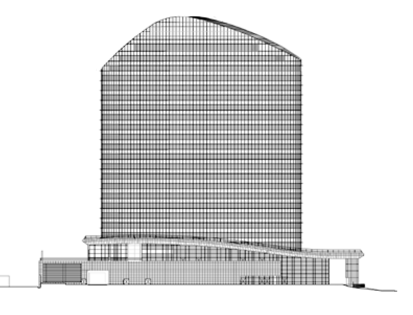 整座塔楼采用了核心筒结构。设计以柔曲的外形赋予了建筑旋转的动感,并利用立面的水平翅片与玻璃凹槽使这种动感更为突出,仿佛建筑并非固定在地面上,而在凌空转动。