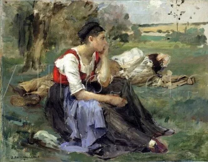 勒帕热受到重伤后,就回到了家乡一边养伤一边画当地的农民,当然,他也像其他艺术家一样提交作品参加官方的沙龙展,在前两年都没有什么起色。