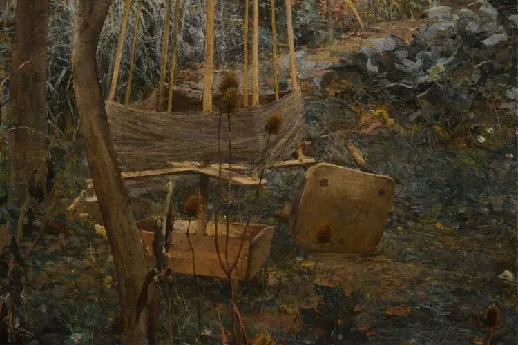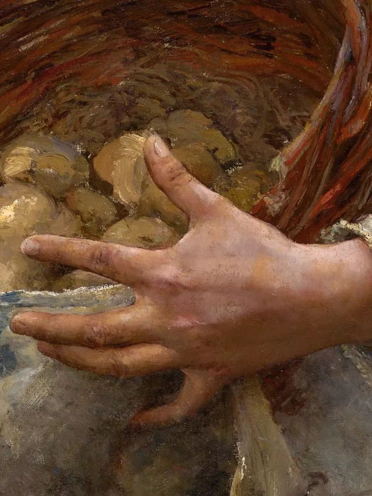 《背柴的老人》这幅作品深深唤起了我对小时候的回忆,他的这幅画刻画了的是一位砍柴归来的老人,他被沉重的木材压得直不起腰、走的颤颤巍巍,调皮的小孙女走在前面采着花花草草。这种对于劳动的回忆与共情 真的能超越国度和时空的限制