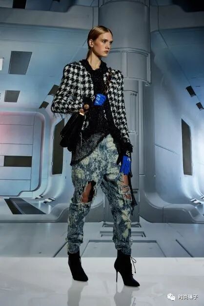 此外,极具视觉冲击力的千鸟格格纹回归,撕裂的水洗牛仔裤为该系列带来了更现代的摇滚元素。