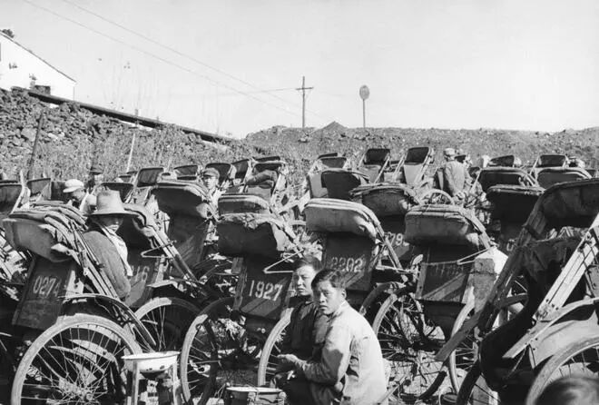 上海的人力车停车场。这些人力车,也就是人们俗称的黄包车,当年的出租车。