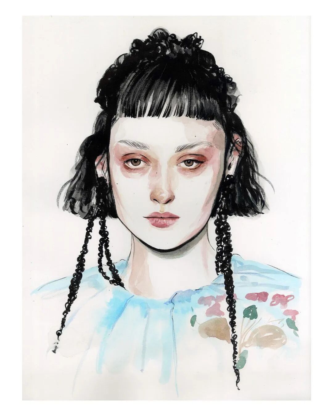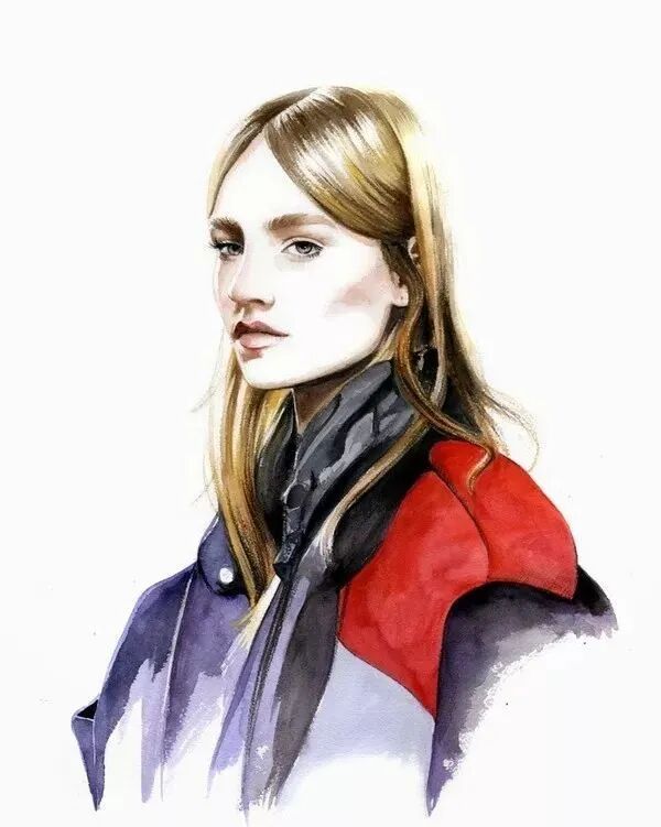 Caroline Andrieu在绘制水彩画时,从不局限于单一工具的使用,这让她的作品更具质感,对于人物传神的表达,Caroline也是下了一定的功夫的。