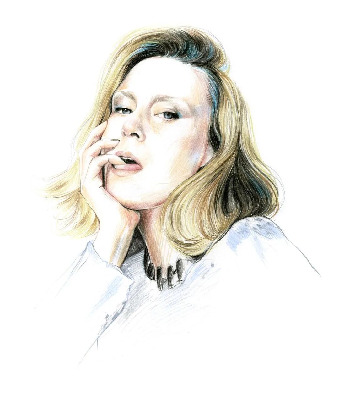 除了水彩之外,彩铅也是Caroline Andrieu最为喜爱的的画材,可无论是哪种工具,她都能通过细致的刻画以及深入的表达人物与服装、氛围的关系。