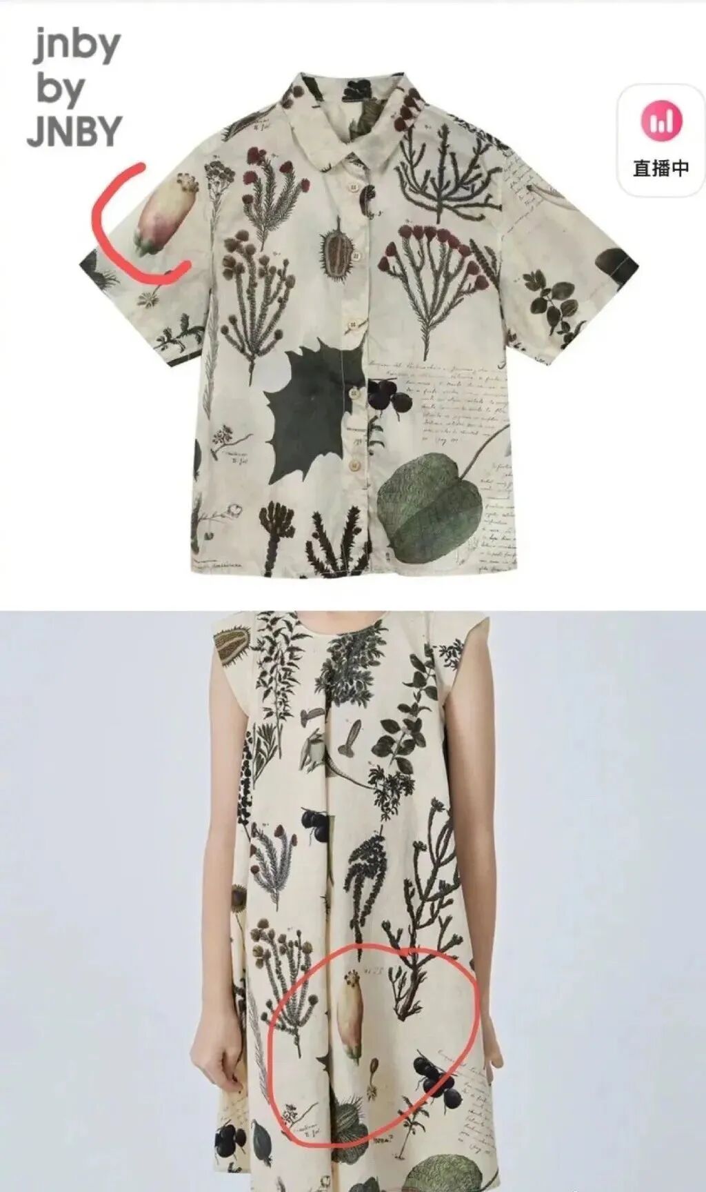 江南布衣童装品牌jnby by JNBY多款印花服装图案形似罂粟果,被消费者在评论区质疑“这衣服上是什么植物的果实”。