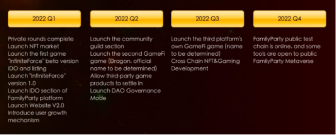 Q4:真棒!我们可以看到FamilyParty的突出特点使其成为GameFi行业的后起之秀。您能否与我们分享项目的路线图和近期有什么动作吗?
