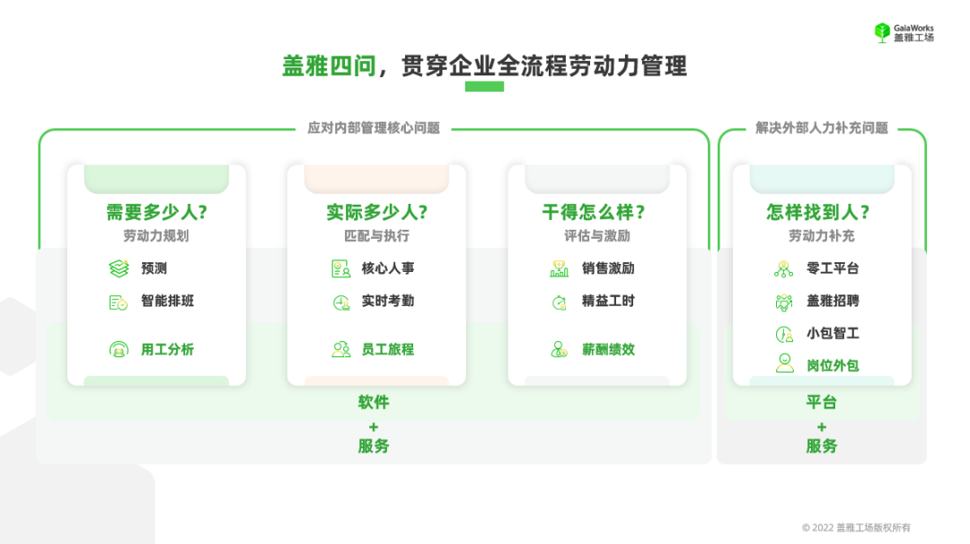 随着人口红利长尾化,劳动人口迅速下滑,企业比以往更加重视降本增效。不仅如此,新生代涌入职场,企业为了减少人才流失,会更加提倡员工体验和公平。同时,数据安全法规的出台、劳动法规政策也在不断变化,这些都会让企业的合规压力愈发凸显。因此,公司需要一套以「合规、效率、公平、体验」为出发点的全流程劳动力管理体系。