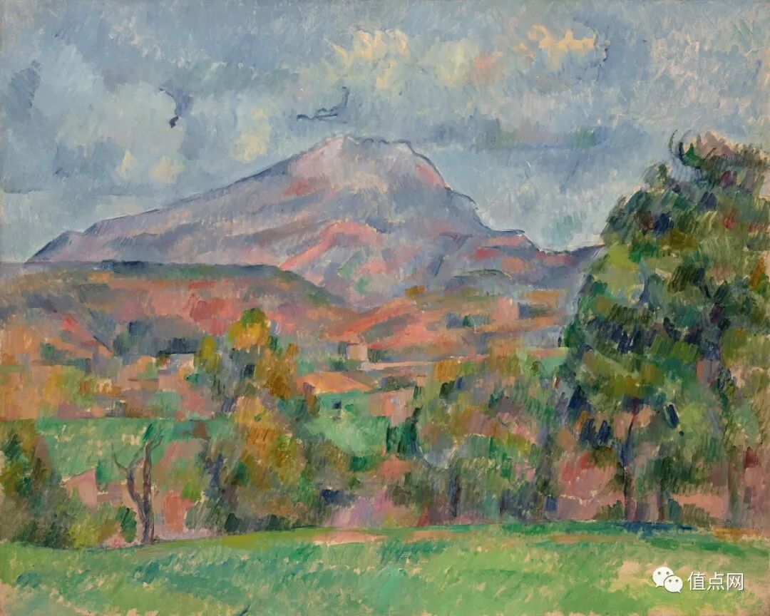 在这个系列当中,我们也可以看到塞尚在人生最后阶段的风格变迁 - 他画得越多,山就变得越平整、越破碎且越不真实,画面从具象趋向简约抽象。这位后印象派大师,成功把形式幻化成色彩的几何线条。