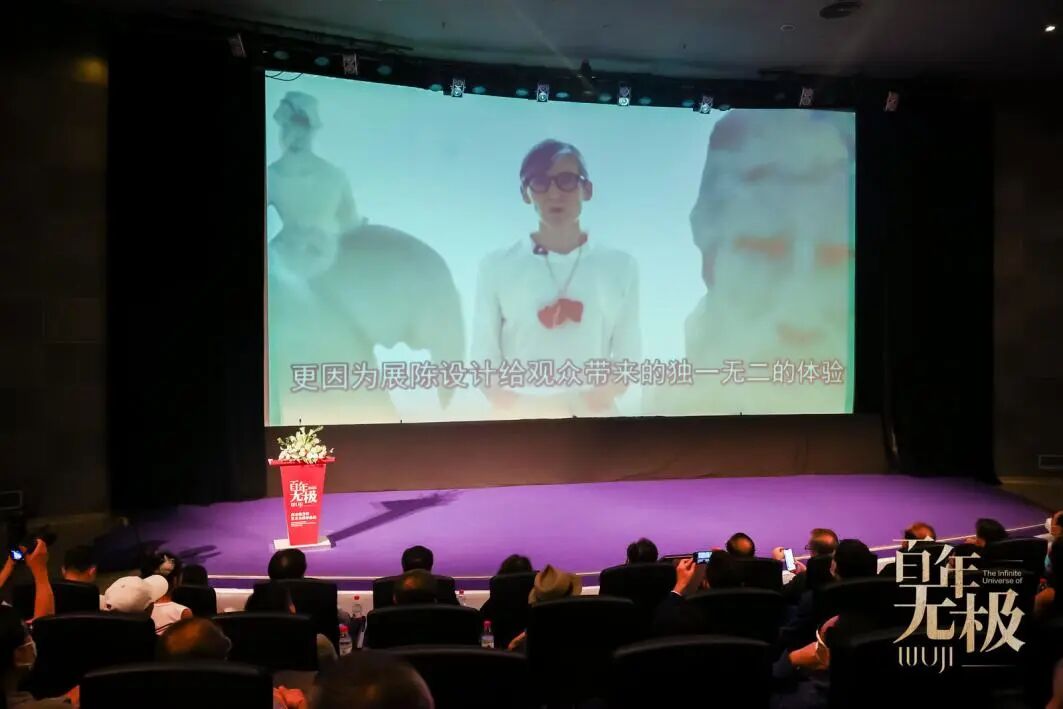 随后,展览策展人钱茜,向现场观众进一步解读“百年无极”的内涵。策展人曾于2016年参观的意大利国家现当代美术馆“无序时空”展览,讲述了时间与艺术的关系,认为艺术的发展是流动的、有层次的、弹性的。这一展览内涵,正应和了中国古老哲学思想“无极”的含义:无极是世界诞生前的原始状态,是无边无际、无往无序,正如西方艺术这150年的无序时空。与此同时,无极又是不断突破边界、突破极限的。她相信,这个展览带给观众们的,不光是美的享受,更是不断突破、超越极限的勇气。