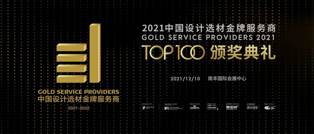 此外,依据参评规则进行终评,最终将会评出100家企业荣膺“中国设计选材金牌服务商(2021-2022)TOP100”,并将在2021广州设计周南丰馆进行盛大的颁奖典礼。