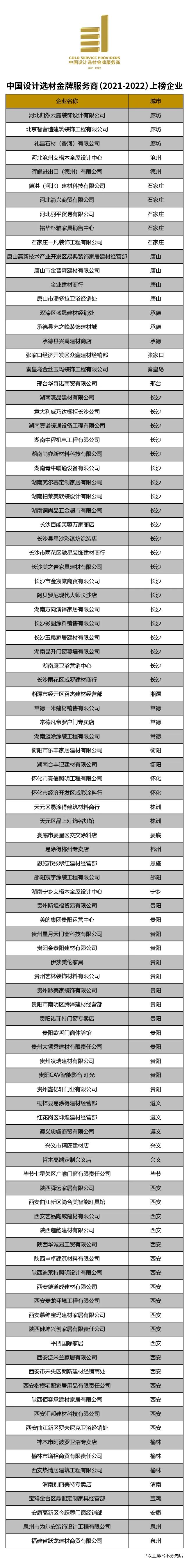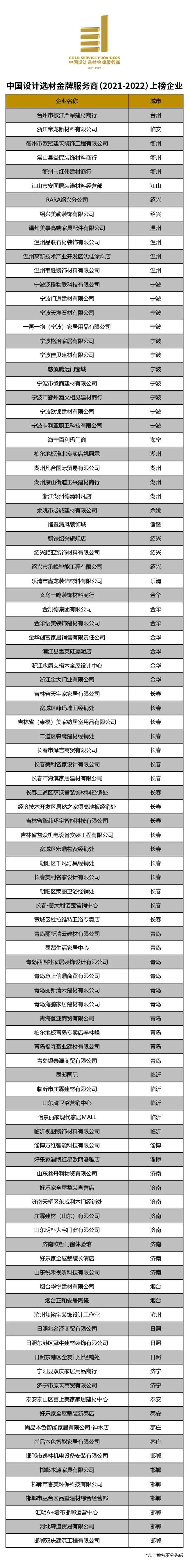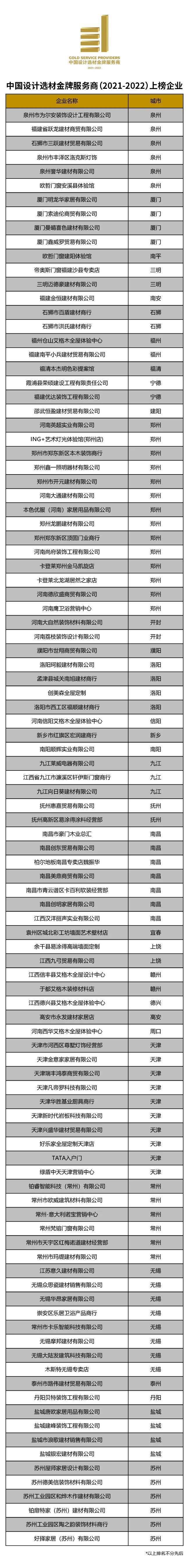 “中国设计选材金牌服务商”评选活动,作为首个从设计师选材服务力的视角评选优质经销商的年度榜单,缘起于广州设计周十余年服务数千家优质经销商对接设计师选材的经验共享,自2016年成功举办以来,盘点了全国逾2000家优秀经销商企业,为服务设计师选材提供了一个优质经销商的识别参考。