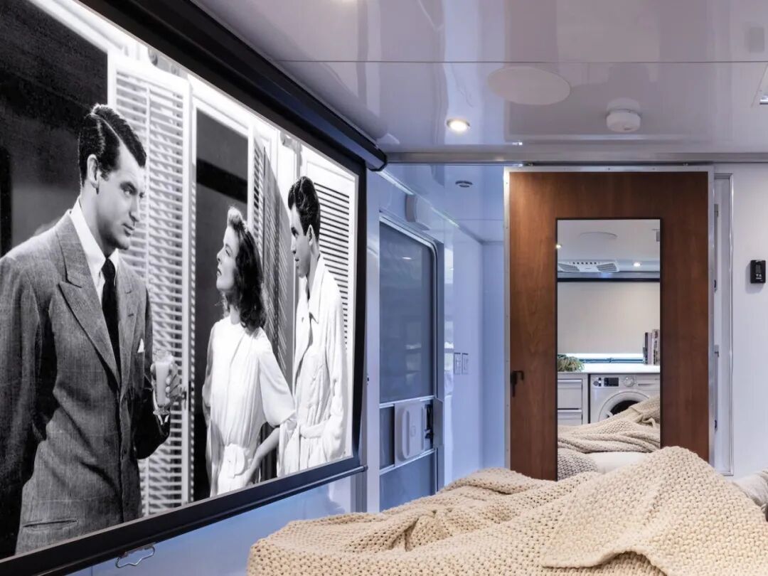 放下床,打开投影机,满足辛苦一天放松身心的家庭影院爱好者的基本需求。