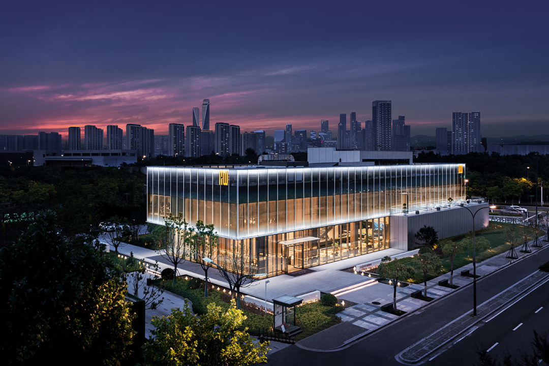 拾级而上,二层以开阔的视野拥揽总体布局及户外通透之景,南面则增设百叶,有效减轻日晒,也营造出虚实之感。