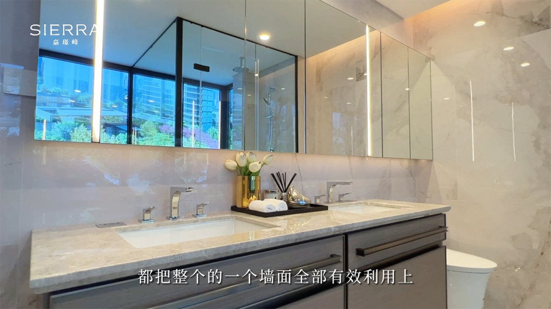 主卫在收纳的引用上,将墙面有效利用,镜柜一进到底,暗藏收纳功能。贴心的面光源为居者带来更便捷的梳洗体验。