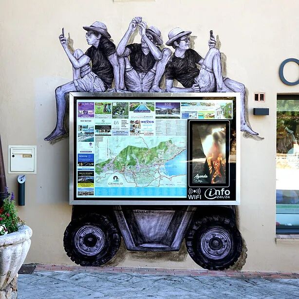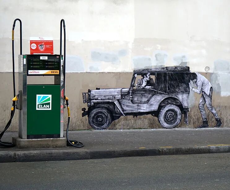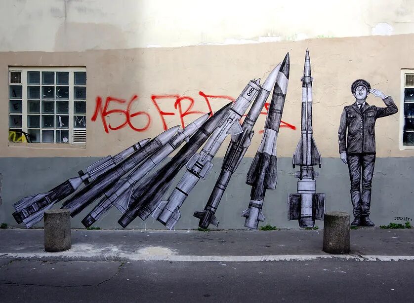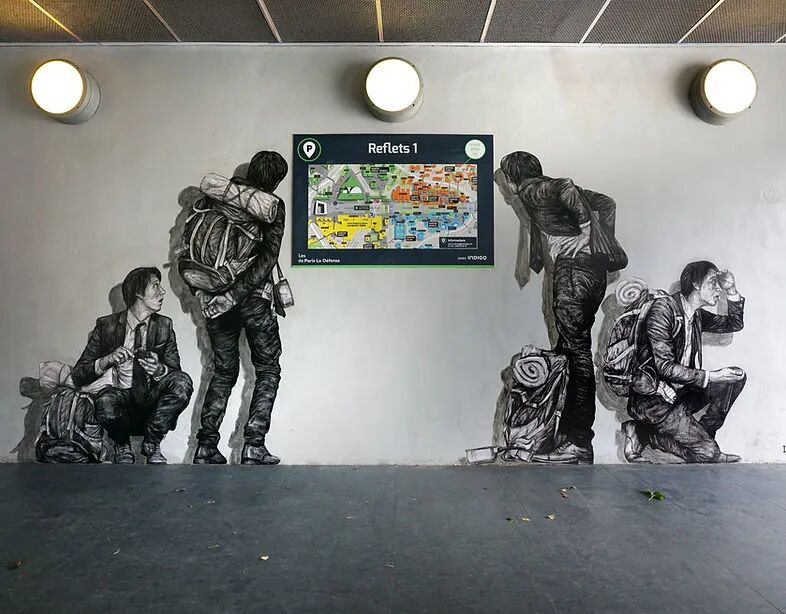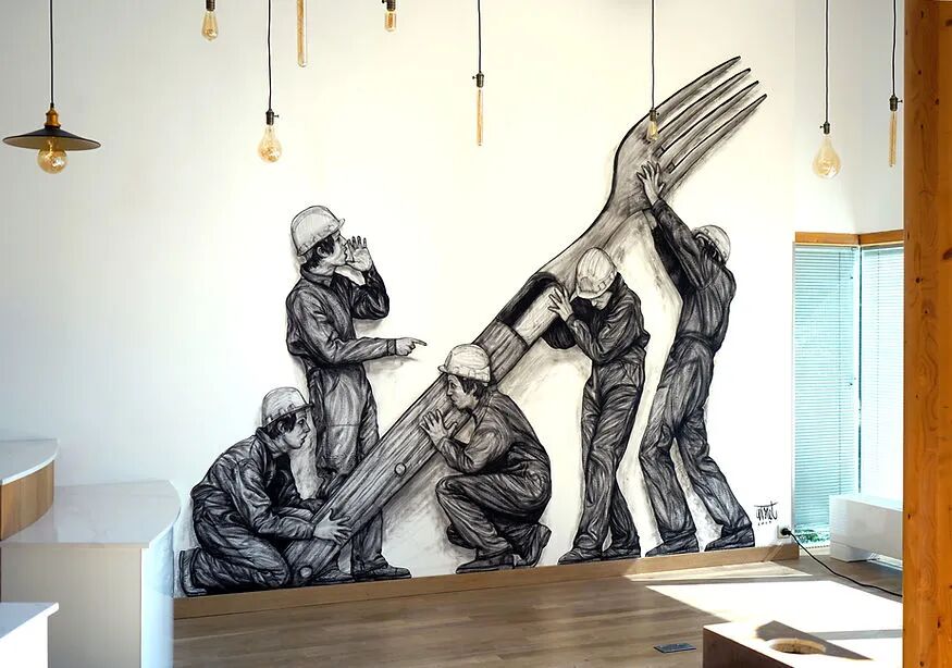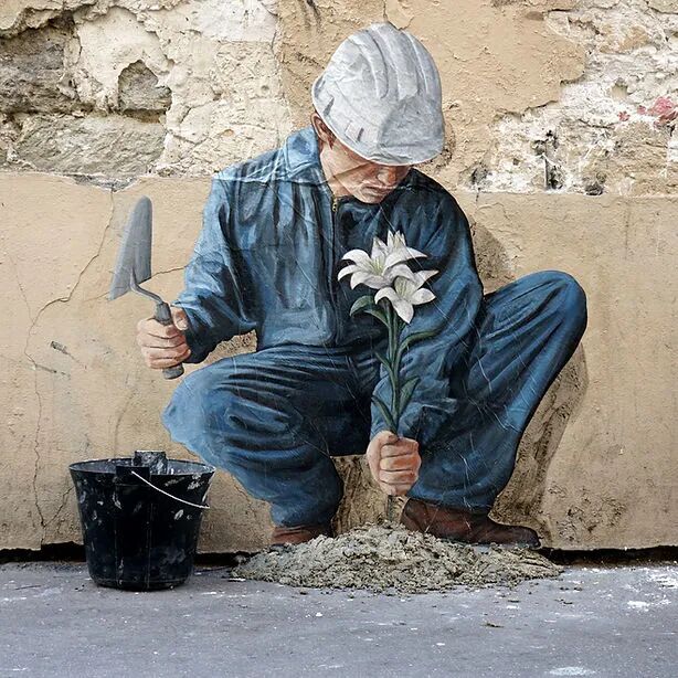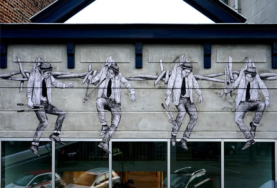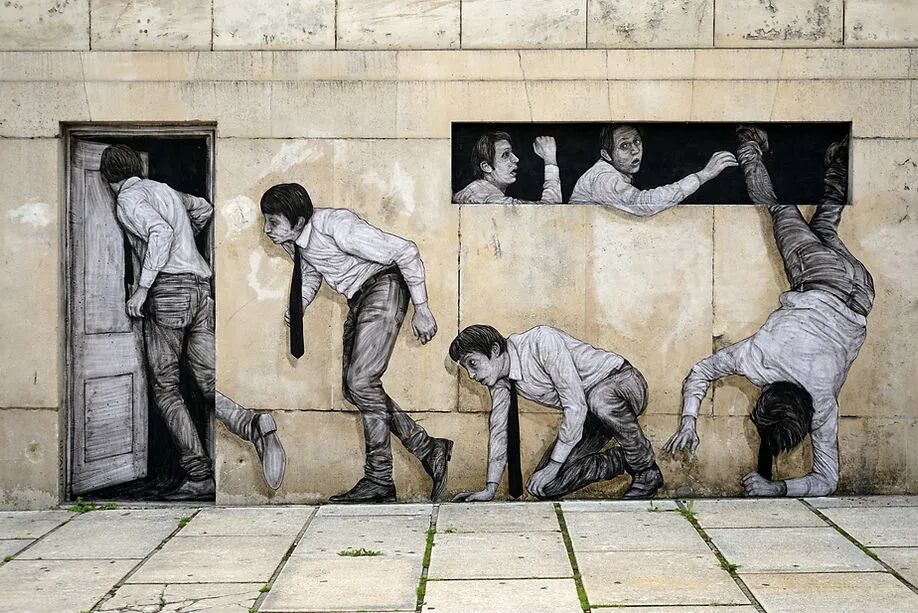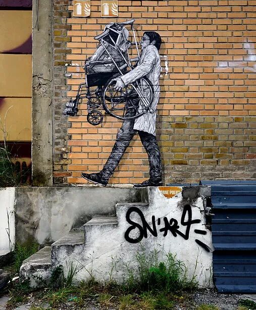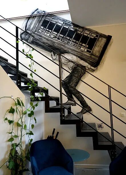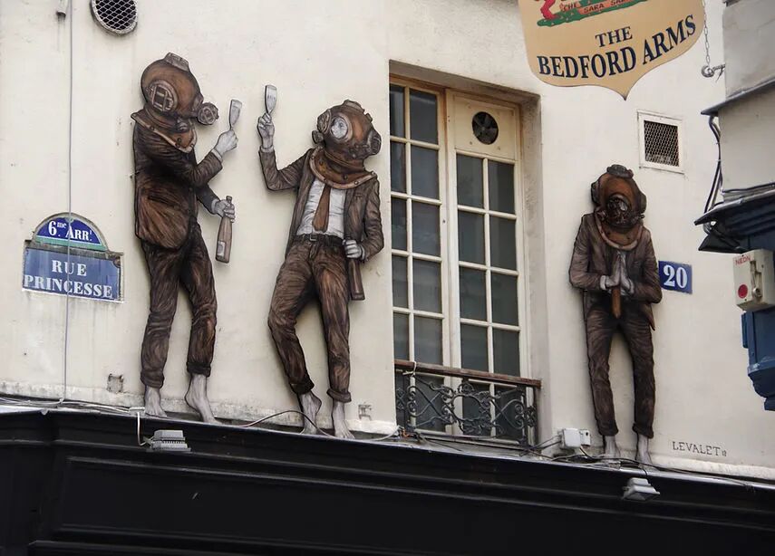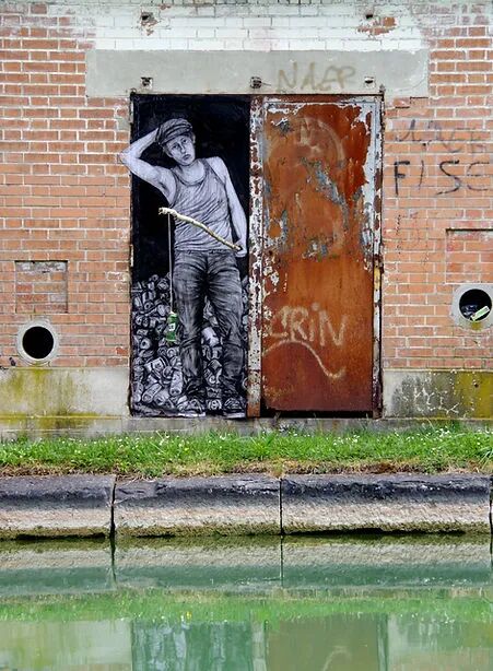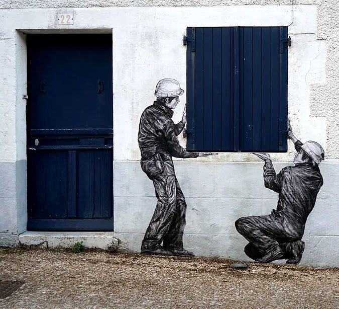 法国艺术家Charles Leval更多的作为Levalet被人们熟知,白天是一位普通的艺术老师,但晚上就会化身为城市猎人,拿着画笔活跃在街头巷尾,整座城市都是他的画布。