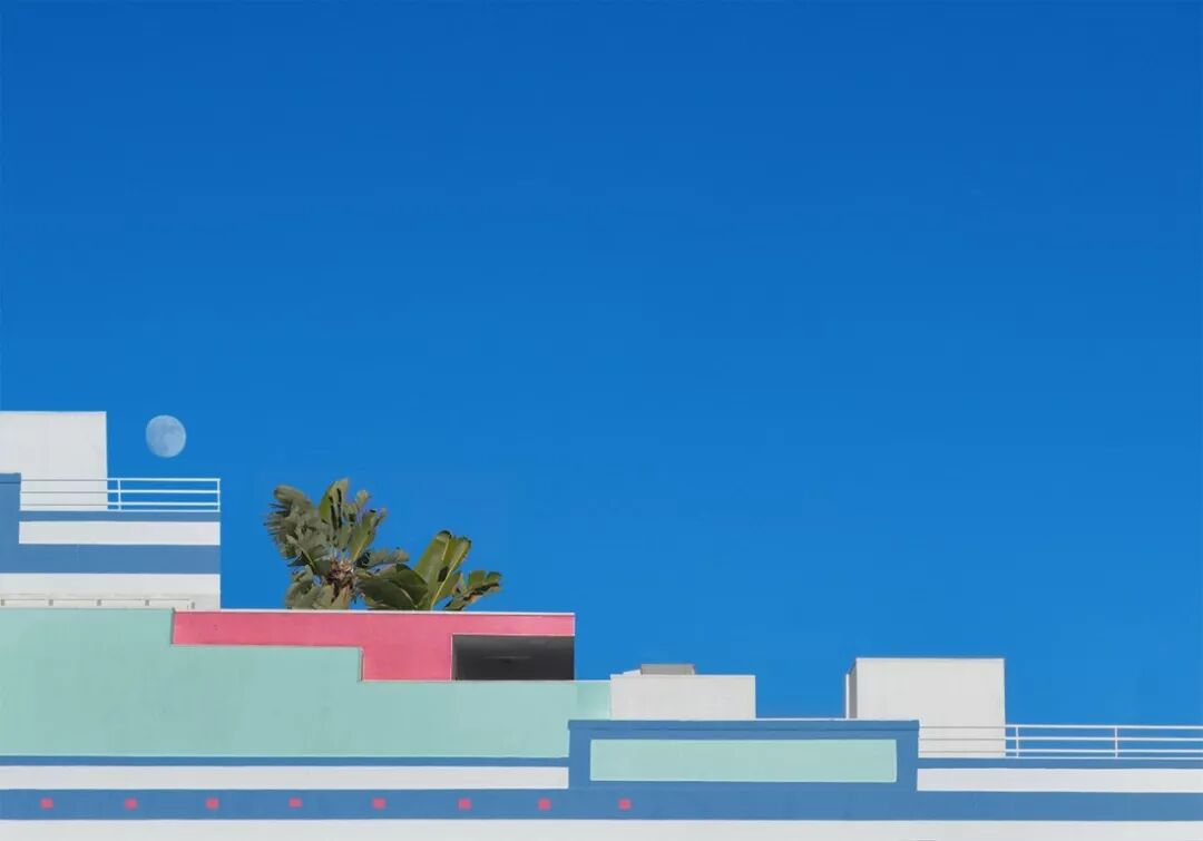 多年来,Hayley走访了许多无名的建筑,参考了大量电影,并有效利用了摄影、平面设计的方式,重现了一个她眼中明亮的、完美的、平衡的,带着规矩的线条和几何美学的世界。