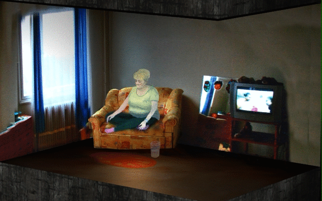 该视频是一个动画循环。它由几个类似拼贴画的场景组成。背景基于 3D 空间,带有从互联网上下载的房地产广告照片的纹理。主角是在 2D 中绘制和动画的发明角色。