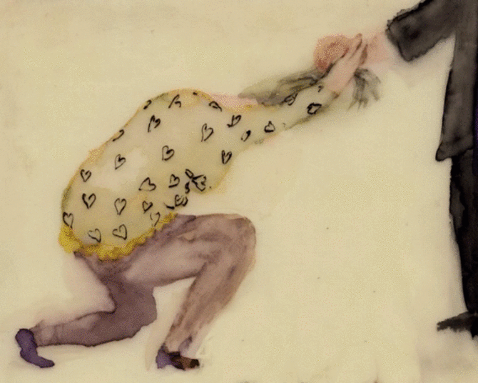 放弃睾丸(2017) 是一系列绘画和视频,处理日常生活中人们的愤怒和他们不服从的可能性。