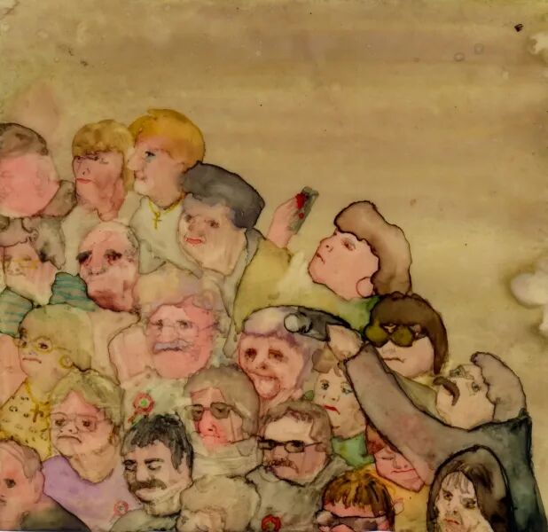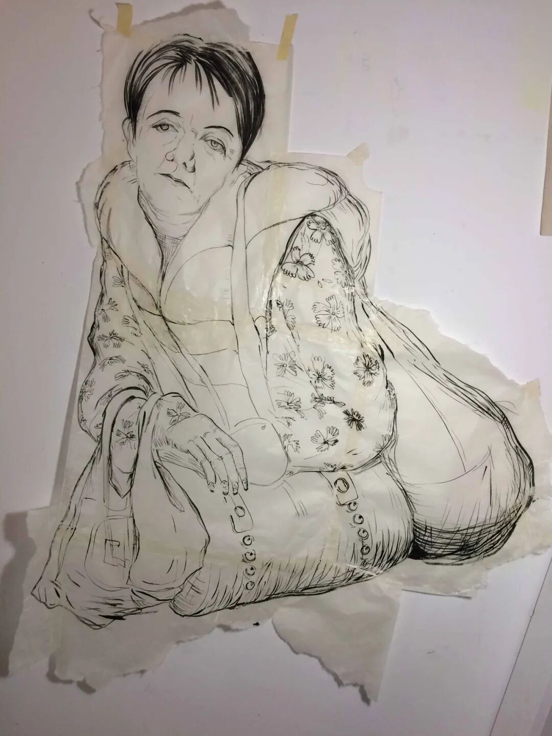 我观察那些穿着厚实衬衫、亮片嘴唇图案的人;褶边荷叶边衬衫,嘴角下垂,浮肿的眼睛化着妆。我对在身体褶皱内外扭曲和消失的花卉图案很感兴趣。我喜欢我能认同的疲倦或恼怒的手势和姿势。