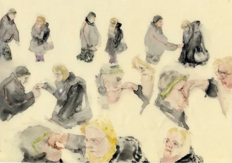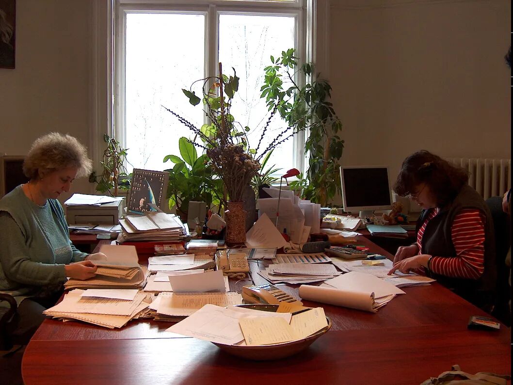 当我在布达佩斯美术大学读书时,有一个公开征集学生作品的机会。他们想找到最好的画家,有匈牙利所有美术院校校长评选。我没有申请,但它给了我创作一幅我们大学秘书处员工的画作的想法,他们是这些看不见的,但关键人物。当我向他们提出这个想法时,他们建议我寻找更多的美学主题来绘画。他们害怕这样的行为是在嘲笑他们。他们不认为自己“值得被描绘成一幅油画”。