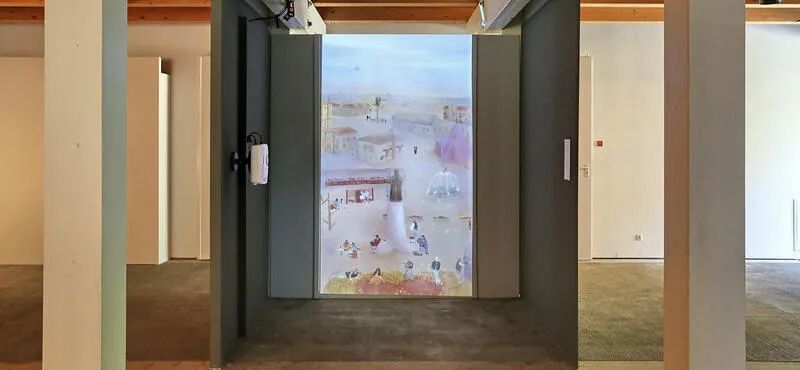 借助名为 ARTIVIVE 的免费 AR 应用程序,可以使这幅画栩栩如生。下载此应用程序后,观众可以使用智能手机相机观看视频。壁画上的女人是莫莉·布鲁姆。在视频版本中,我们可以听到由 Zsófia Bán 编写的她重新发明的意识流的一小段片段。图像和文字将沉思的女性置于当代语境中。