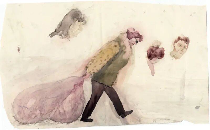 背包; 35 x 25 厘米,纸本水墨