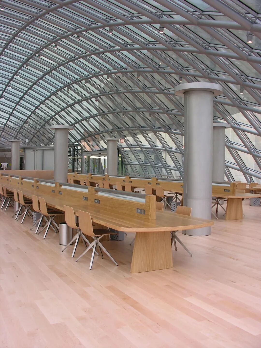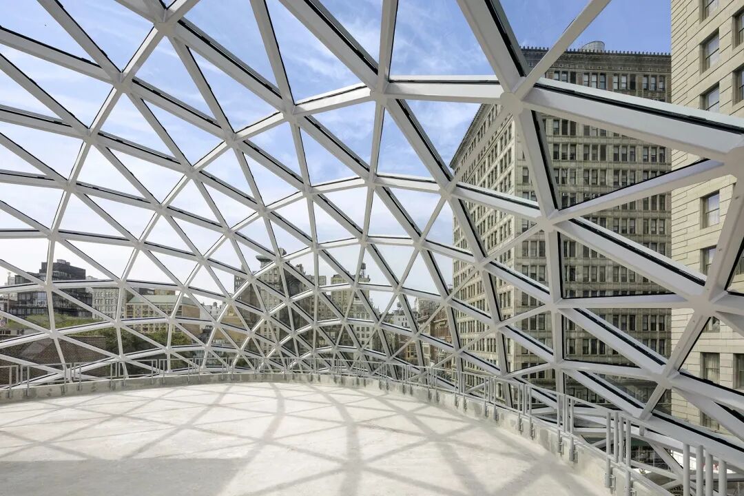 玻璃天花板可以经过精心设计从而引起人们的注意,它们的功能用途相当有限,而且由于玻璃的隔热性能它们的缺点可能更大,但人们还是一直在制造,因为它们非常吸引人。玻璃天花板让它们下面的一切都充满活力,让室内充满自然采光,我们似乎本能地被它吸引。 今天的7个玻璃天花项目不仅如此,它们还大胆模仿自然的设计,以非正统和生物形态的方式扭曲玻璃,延伸了玻璃天花板的可能性极限。 · 01 · 44联合广场,BKSK建筑事务所 美国,纽约 BKSK建筑事务所这一重建项目通过细致的外墙修复改造了原建筑的青铜和石灰石店面,使这座历史地标重现昔日的辉煌,引人注目的新3层楼玻璃天花板让人们注意到更早的历史。自由形式的网格圆顶由钢、玻璃和赤陶遮阳板制成的四坡屋顶模仿海龟的壳,这是对纽约土著人的敬意。对于建筑师而言,将城市历史的这两个来源并置“在当代和历史建筑之间创造了有意义的视觉对话”。 · 02 · Bálna,ONL 匈牙利 , 布达佩斯 布达佩斯的这一再开发项目通过在旧商业中心添加水生玻璃,将城市景观与邻近的多瑙河重新连接起来,弯曲的玻璃穹顶模仿鲸鱼的流线型身体,但设计非常微妙,玻璃添加物拥有自己的生命,超越其生物形态起源。 Bálna也是鲸鱼的意思,建筑概念指的是布达佩斯作为重要的大都市中心中欧的心脏,名称和形状象征着它的文化潜力和世界上保存最完好的城市之一的商业杆位。 · 03 · 芝加哥大学图书馆,JAHN 美国,芝加哥 芝加哥大学校园中心的场地被各种不同的建筑所包围,风格各异,南边是哥特式,东边是内奇的雷根斯坦图书馆的石灰岩粗野主义风格,北边是亨利-摩尔纪念碑和莱戈雷塔的彩色学生公寓,西边是一栋新的科学大楼。 图书馆要解决的首要问题是要用自动存储和检索系统(ASRS)存储350万册图书,将这些书存放在一个精心设计的地上 "盒子 "中。为了尽可能地减少对开放空间的影响,使阅览室和保存部门成为最令人愉快的空间,建筑师选择将书放在地面以下,在那里它们的环境可以得到更好的控制,以达到理想的60度恒温和30%相对湿度,而且成本更低。因此,以人为本的空间可以位于一个最小的椭圆玻璃穹顶的地面上,它打破了传统的关系。 这样做创造了一个更自然、更适合人们学习的地方,图书馆的阅览室提供了阳光明媚、类似于户外的氛围,而又没有户外的不便之处。 · 04 · 米德尔法特储蓄银行,3XN 丹麦,米德尔法特 这个位于丹麦米德尔法特海滨小镇的新多功能商业空间为建筑城市景观带来了轻快的变化,但又不过分突兀。白色倾斜的屋顶与老城区的色调形成鲜明对比,但建筑的规模和比例与街区并无不协调。同样,装饰屋顶的三角形飞檐巧妙地兼作天窗,是一个大胆的建筑选择,同时模仿了海浪,正是这些窗户提供了海边的景观。 · 05 · 2015年米兰世博会中国馆,Link-Arc 意大利,米兰 米兰世博会中国馆独特的弧形屋顶将米兰天际线的轮廓与附近连绵起伏的自然景观融为一体,代表着希望城市与自然和谐共存的宣言。外面层层叠叠的叠瓦竹漂浮在屋顶上方,遮蔽了进入天窗半透明薄膜的阳光,为内部游客营造了一种空灵的氛围。 展馆的屋顶是一个自由形态的木材结构,采用了当代胶合板技术,创造了大跨度的展览空间,覆盖多媒体装置,由22000个LED灯杆组成,与景观融为一体。 屋顶上覆盖着一层竹片,为展馆的轮廓增加了纹理和深度,并在建筑的半透明防水膜上创造了光影效果。这些屋顶板是通过一个独特的数字过程设计的,首先是直接使用Processing对其几何形状进行编程。随后进行了密集的优化和合理化工作,以确保这些面板能够紧跟屋顶形式,同时简化制造和施工。 · 06 · 萨尔瓦多巴伊亚地铁站,JBMC 巴西,萨尔瓦多 萨尔瓦多是巴西的第一个首都,它的城市布局非常独特,由山丘和山谷形成,这种模式在20世纪60年代后得以强调,山上的是住宅,而山谷作为公路运输的载体导致了不可持续的交通拥堵。 这个新交通枢纽的中心主体是大型重叠的半圆柱体,像倒下的多米诺骨牌一样,这种倾斜的图案允许阳光穿过隐蔽的拱形天窗,大大照亮了主站。 · 07 · MyZeil,knippershelbig 德国,法兰克福 这个法兰克福的零售和商业中心上覆盖着玻璃屋顶,总面积约为12,000平方米,设计师对屋顶的处理基于峡谷的形状。结构使用形状活性元素和将自由形状的表面分解成三角形来实现的,标准化的方法和工具并不存在,首先必须实现构件的定向,以满足美学以及结构和功能的要求,之后将形状划分为巨型三角形,标明特殊节点的位置,然后再细分为更小的三角形。 编辑:Z