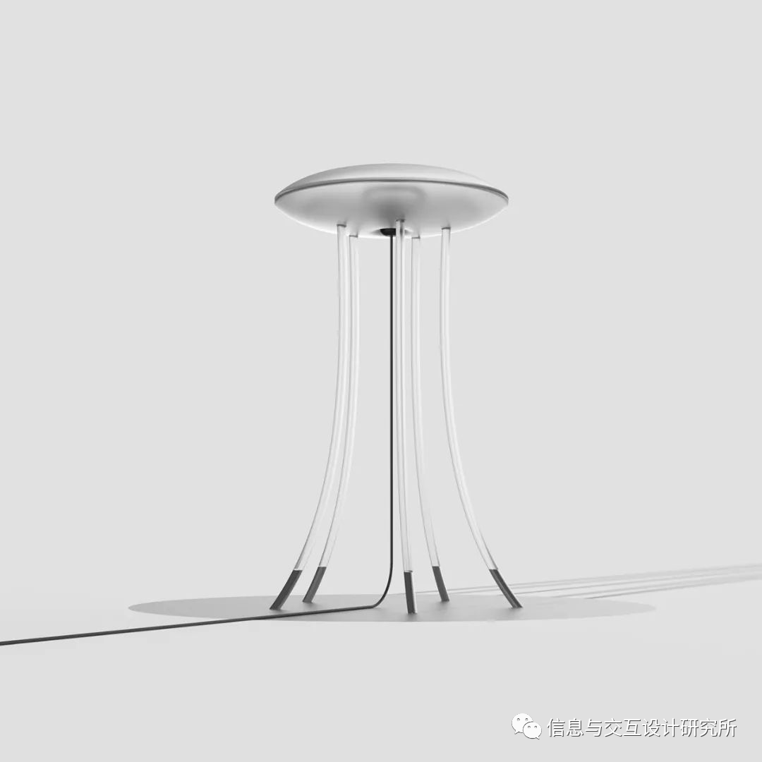 灵感来自一种水母(Aurelia Aurita或称为月亮水母)。水母一直是我的创作源泉中的一个意象,想用这款落地灯展示水母的律动。