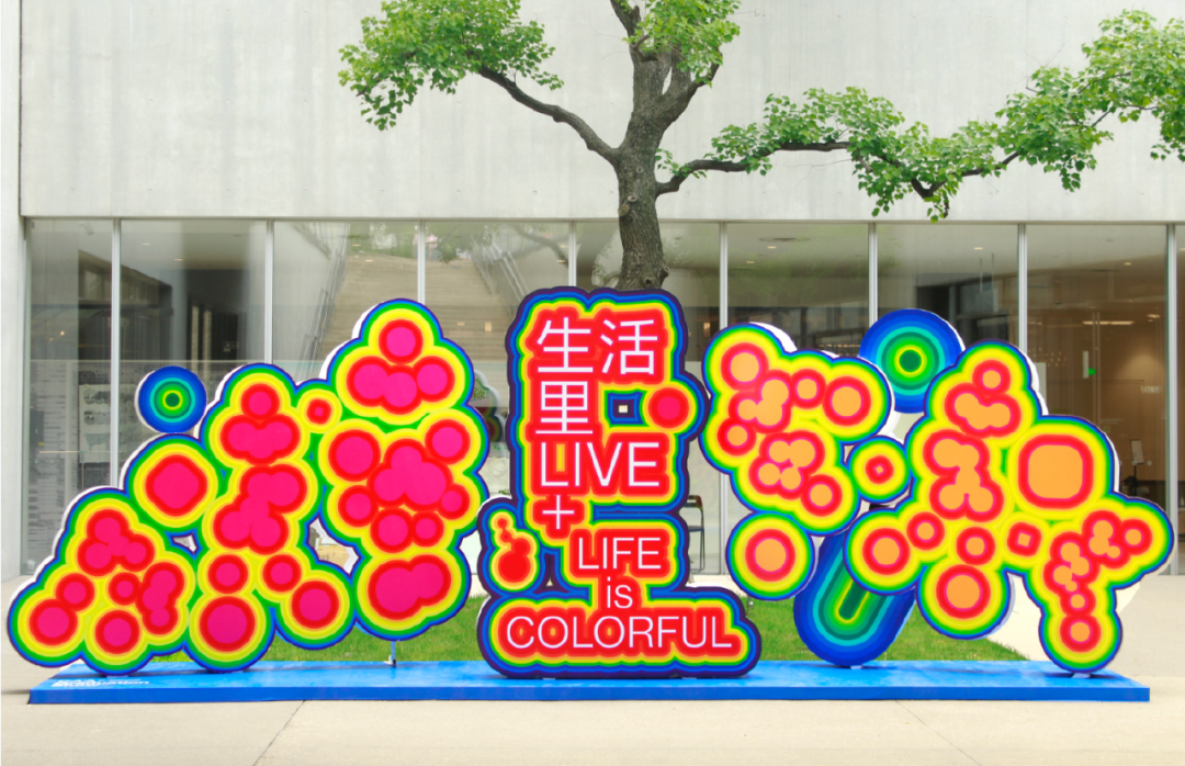 视觉通过文字信息秩序的编排进行主次大小变化,加之字体边缘不断扩张和不同色彩的变化,形成不断扩展的视觉张力。在动态表现上由点的浮现构成前行的人形,多彩的点泛起的涟漪寓示着知识边界不断拓展,也是信息的扩大传播,传递当代青年人绚丽多彩的“生活”的同时,也是设计与生活之间激荡出的层层波澜。