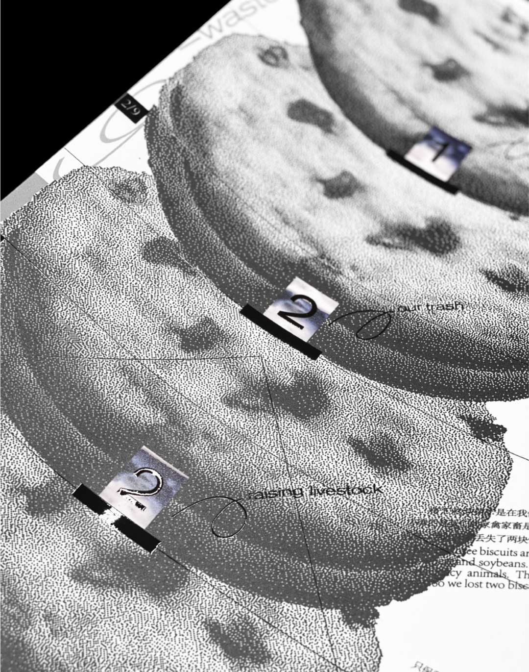 我们毕业设计的所针对的问题是低价格食物浪费,举个例子来说明吧,全球每年粮食生产总量我们用九块饼干来表示,最终呈现在消费者面前的仅有四块,其中的五块都在粮食生产、运输、养殖中损耗掉了,而消费者却仍用食物价格的高低来衡量食物资源的珍贵性。