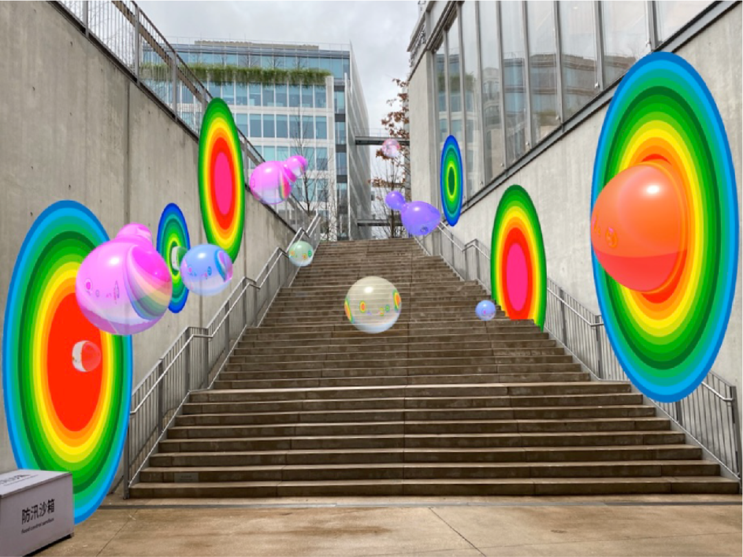 我们用了一周的时间去梳理,一周的时间去尝试,一周的时间去落地。在前期梳理和尝试阶段,我们进行思维拓展和大量的调研,迅速锁定想要的表现形式,并进行设计尝试和延伸设计;在落地时考虑到设计是否会破坏天目里的场域氛围,我们运用了异形装置和AR虚拟影像来活跃展场氛围。