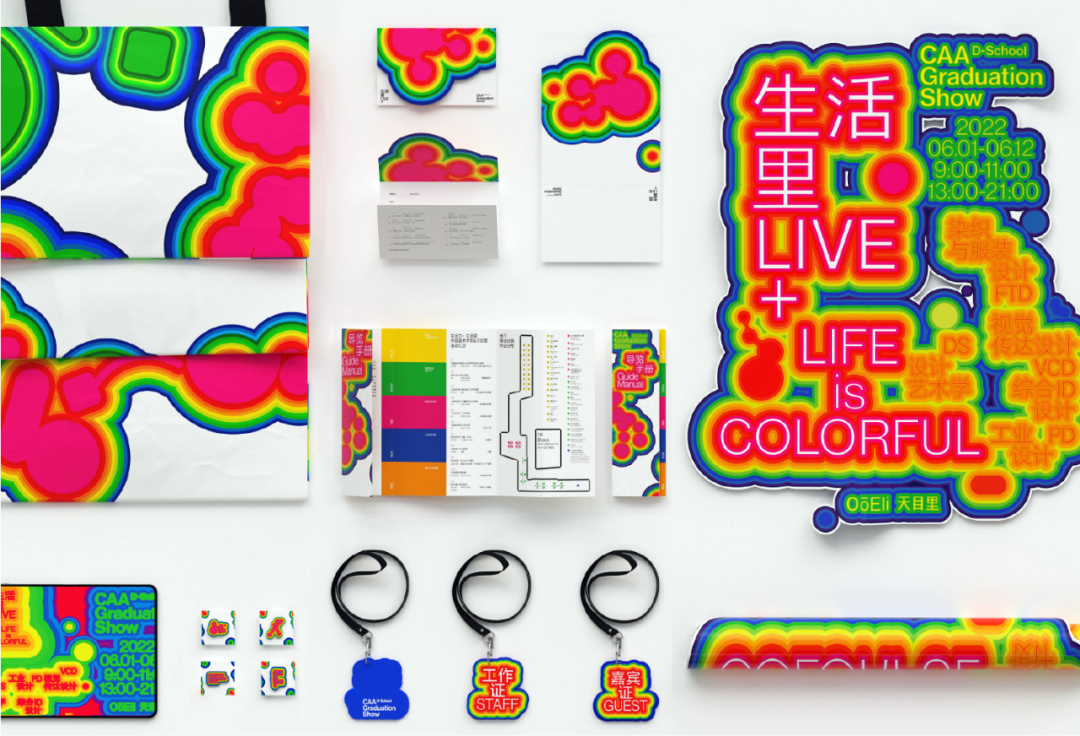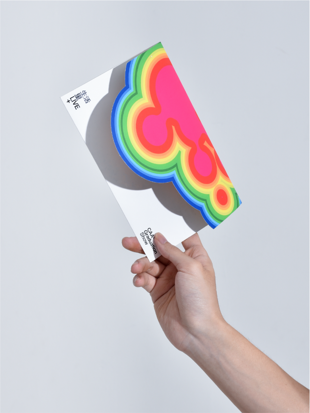 我们一共做了三届毕业展主视觉形象,以生活里LIVE+为例,我们希望传达出一种生活的态度,希望人们在多姿多彩的“滤镜”下去感受生活。