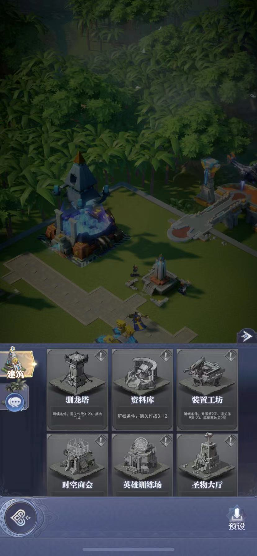 《时空之弈》机制上的另一个差异在于周边玩法上的包装,玩家随着整体等级提升,能解锁各类功能性的建筑。游戏提供了一些类似SLG里主城建设一样的建造体系,玩家可以根据功能性建筑和装饰性建筑来按需建造基地。