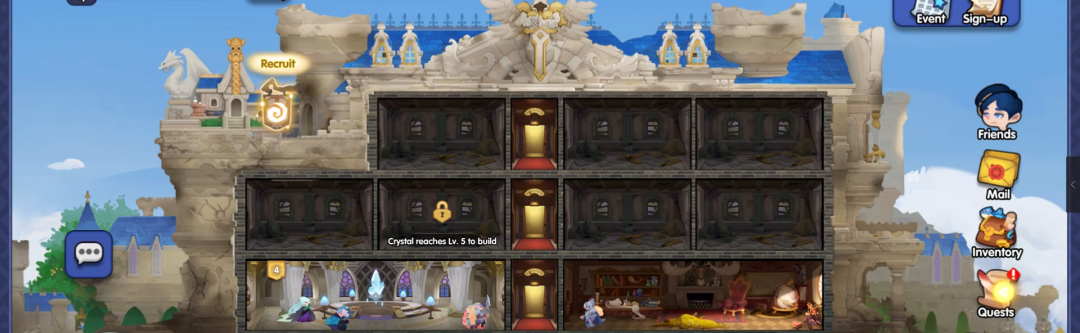 不止《时空之弈》,像网易前段时间测试的《Project Castle》也有类似的拓展。包含了一些家园建造、模拟经营的玩法要素,玩家建设自己的城堡,为自己拥有的英雄构建容身之所。一些建筑、房间的解锁建成,也会和英雄故事等养成要素相关。