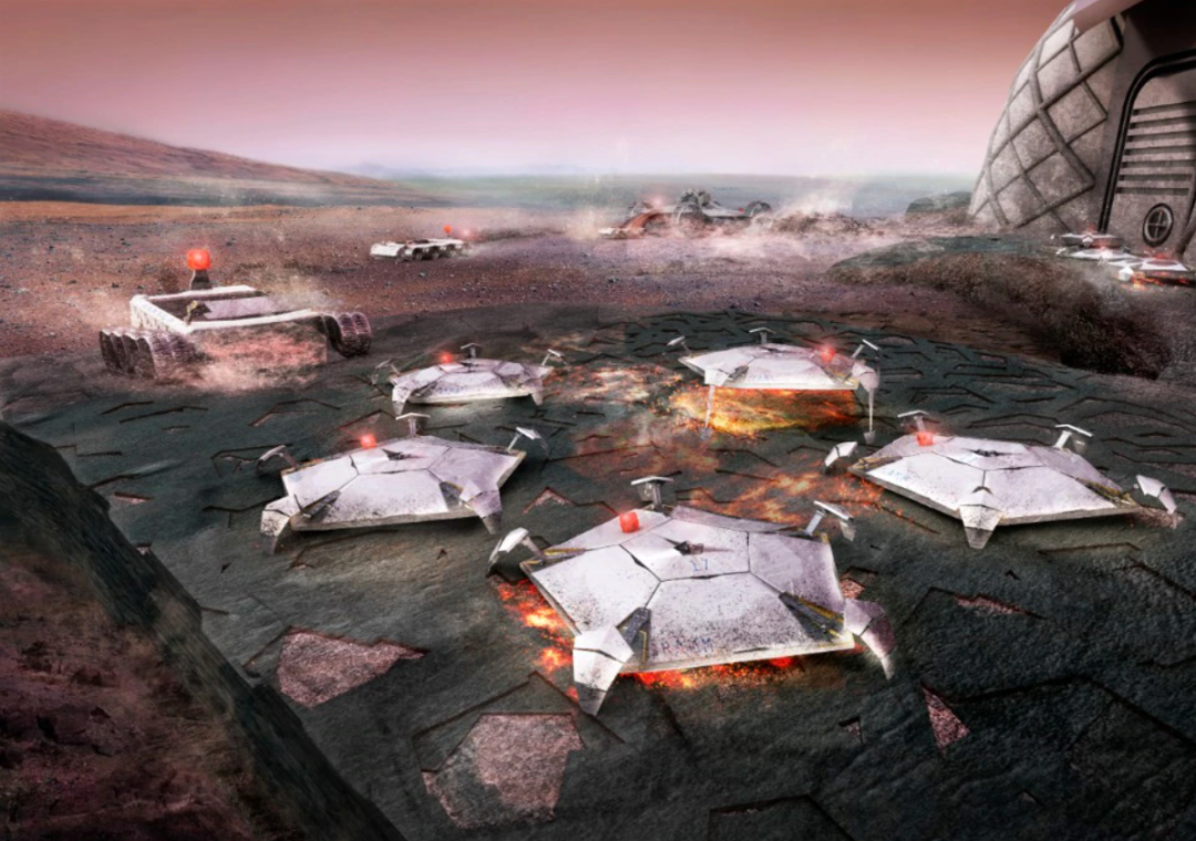 也许建筑师们最接近这种具有更广泛应用的技术转移是探索火星生活概念的时候,这也是促使诺曼·福斯特和哈塞尔设计自主生活方式的原因,他们使用机器人构造和印刷组件来展示地球可能变得适合人类居住的方式,尽管大气层不仅无氧而且有毒辐射水平。