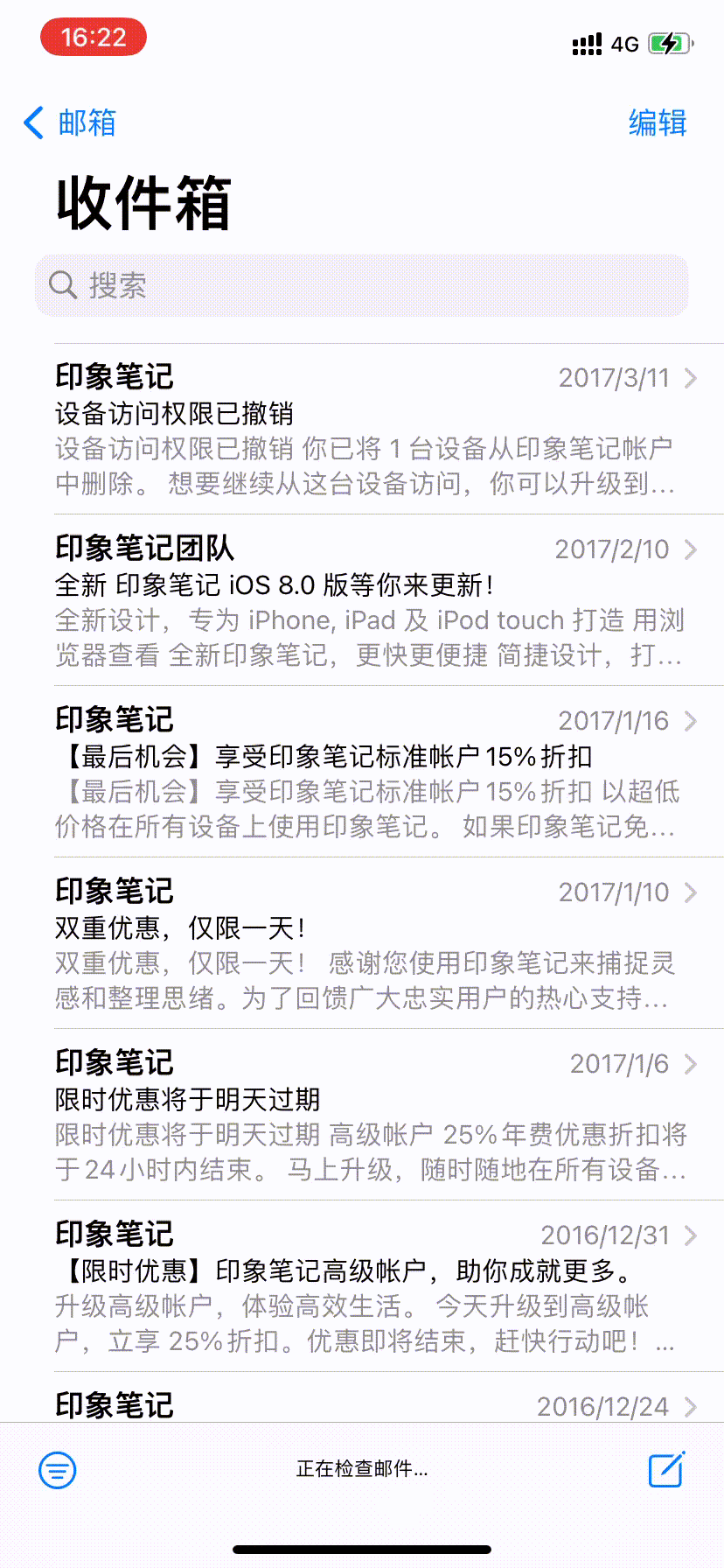 当含有「取消」按钮,通常页面有需要一些填写的表单,如下图iOS邮箱所示: