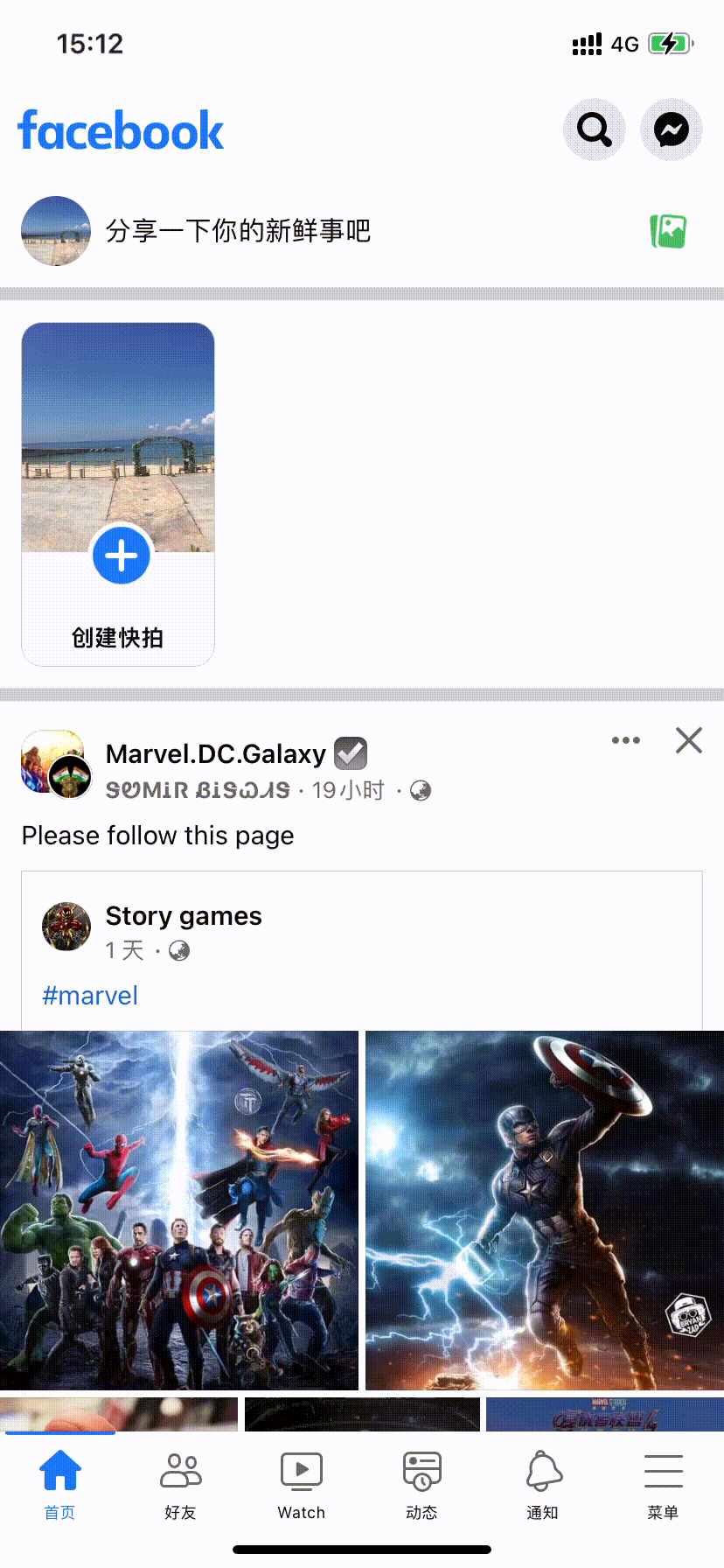 facebook发布动态,页面从底部出现,使用的也是「关闭」。