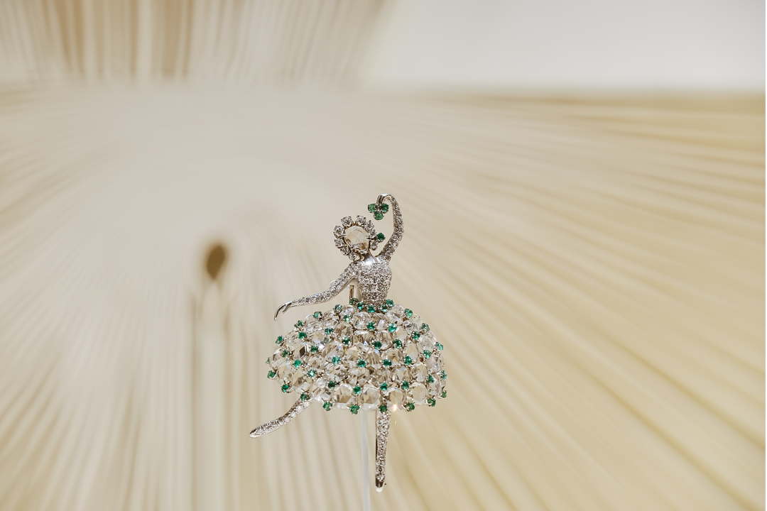 这一作为背景的细节悄悄贯穿了整场展览,也暗示了高级定制时装与梵克雅宝之间十分重要的关系。