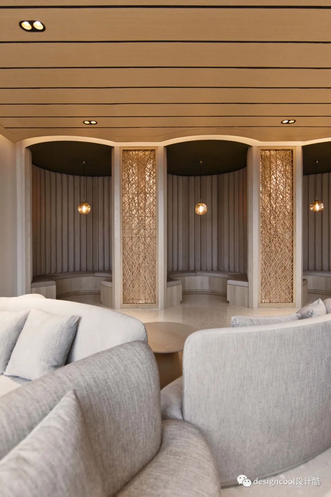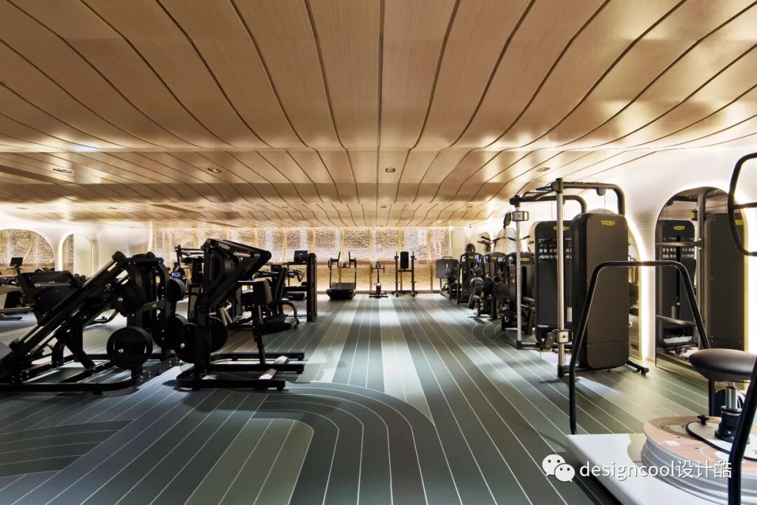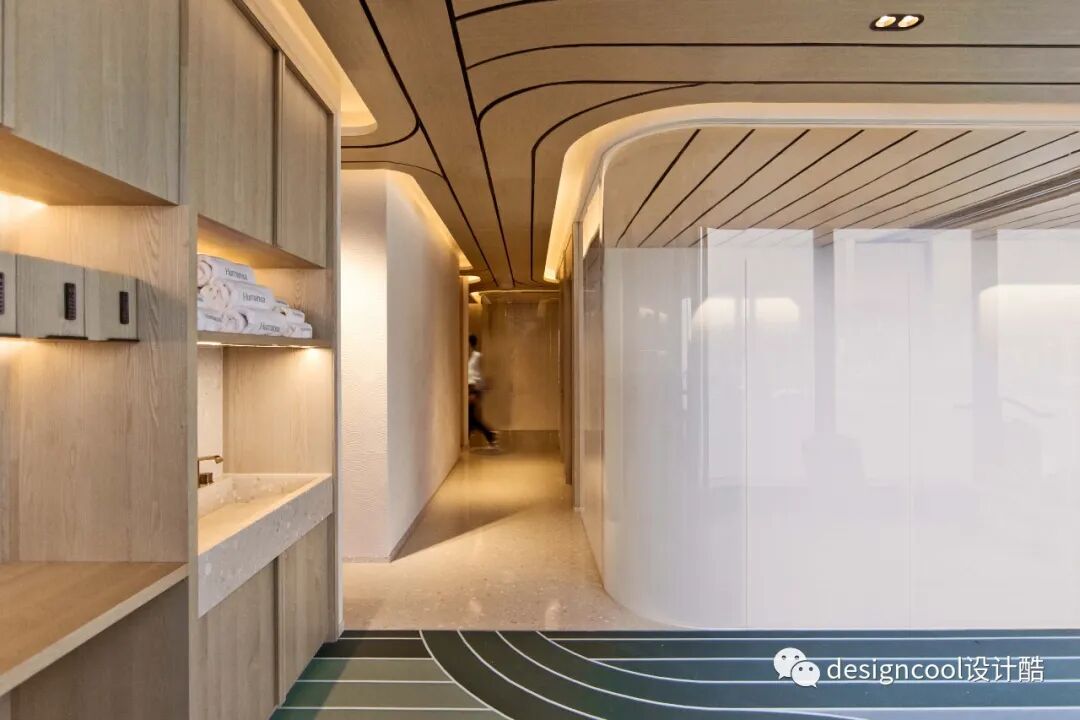 草坪般的乙烯基地板健身区面向海港和水磨石覆盖的个人更衣室,完成了全新的医疗体验。竹屏风为不同的训练区域增加了更多的私密性,让用户在锻炼的同时与大自然联系起来。