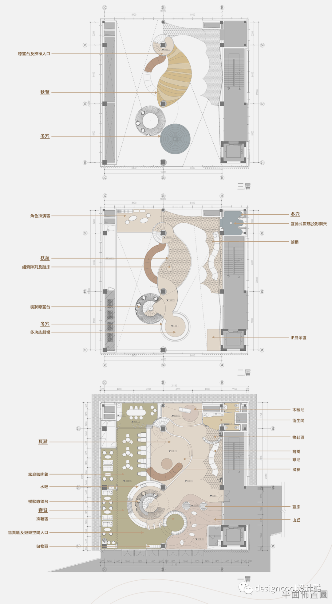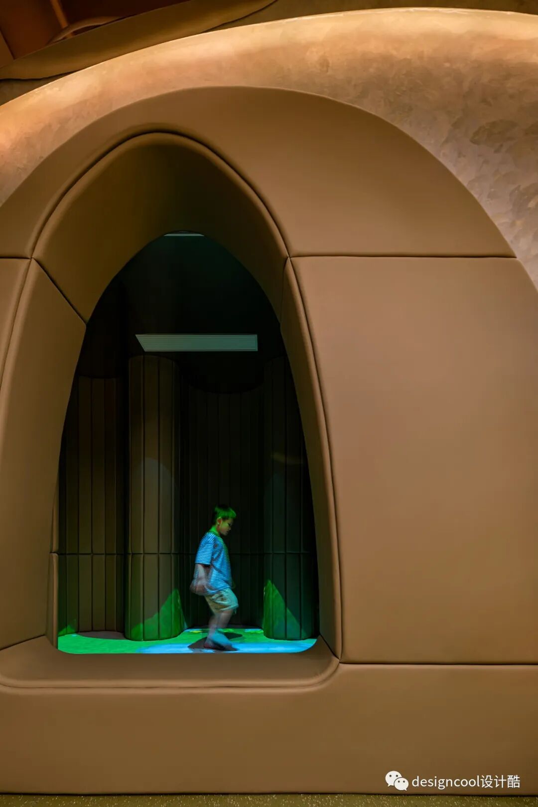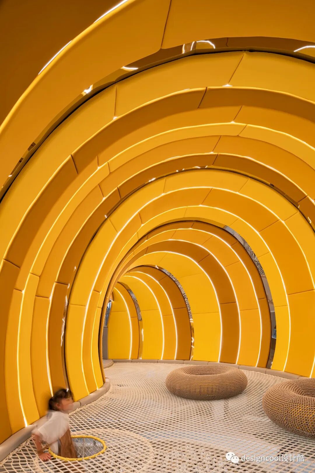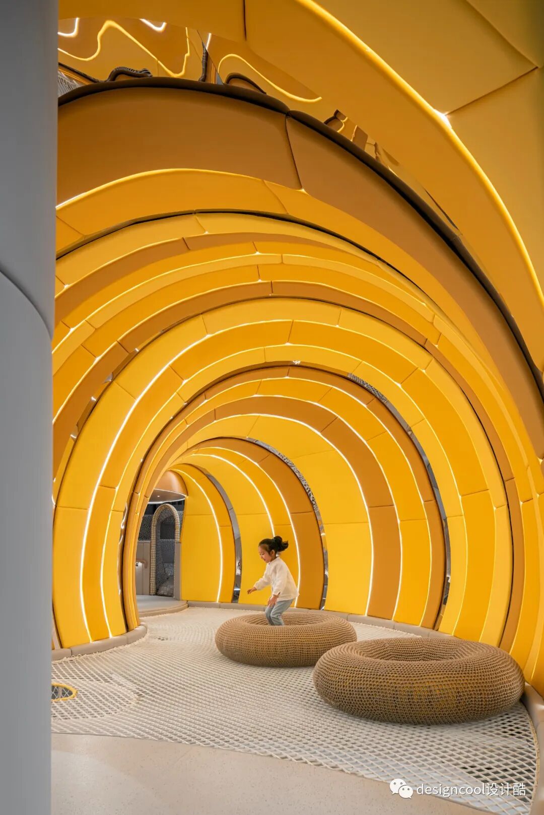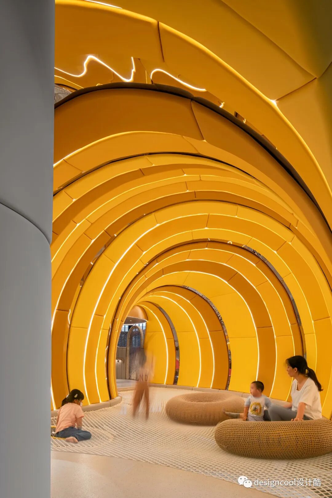 位于深圳南山公园的一栋独立建筑内,双层高体量的特点通过新建的夹层得到充分体现,为孩子们的自我探索创造垂直延伸和空间刺激。整个环境完全由曲线构成,打破了建筑外围边界的僵化,无缝连接了位于三个不同层次的所有活动区域。为了遵循曲线构造,模仿了山谷季节性变化的抽象景观,以激发孩子的想象力。
